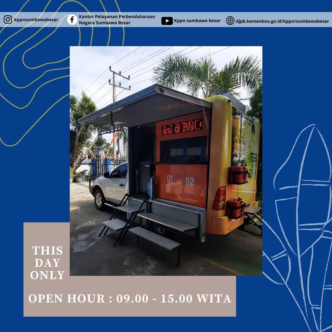 KPPN Sumbawa Besar, 30 Desember 2020 - Untuk memberikan pelayanan terkait pembayaran Setoran Billing pada hari Rabu, 30 Desember 2020, KPPN Sumbawa Besar bekerjasama dengan BANK BNI Cabang Sumbawa menyediakan Layanan gerak BNI untuk melayani pembayaran semua jenis setoran billing (Pajak, PNBP, Hibah, UP/TUP dan lain lain). Layanan gerak BNI ini diadakan bertempat di halaman depan gedung KPPN Sumbawa Besar untuk memfasilitasi seluruh satker mitra KPPN Sumbawa dalam hal pembayaran setoran billing. Layanan ini dibuka mulai pukul 09.00 - 15.00 WITA.