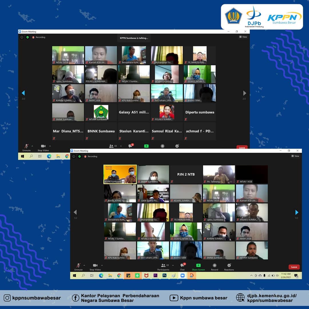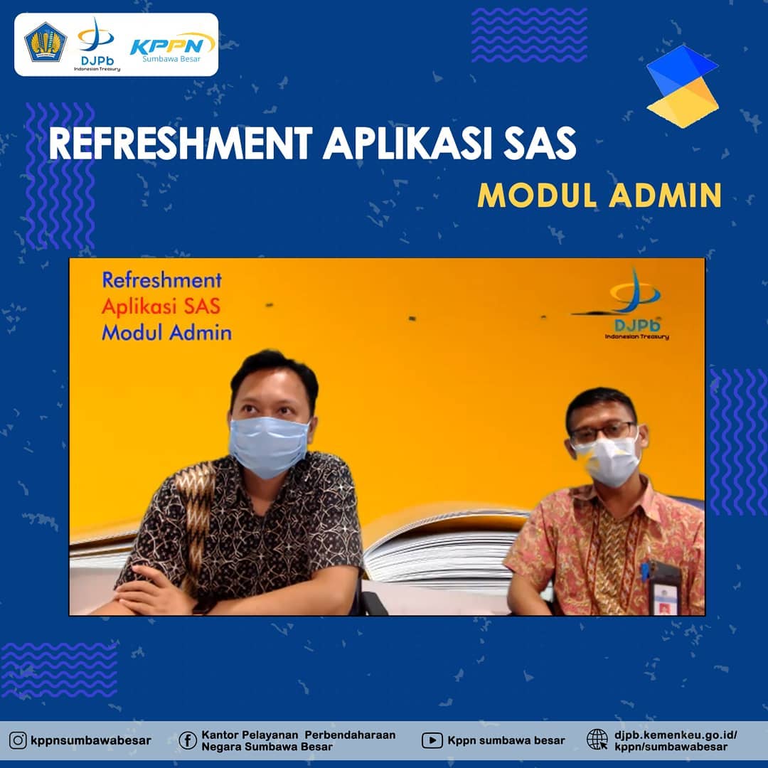 KPPN Sumbawa Besar, 26 Februari 2021 - KPPN Sumbawa Besar melakukan penyegaran/refreshment Aplikasi SAS 2021 kepada seluruh Satuan Kerja pengguna Aplikasi SAS di lingkup KPPN Sumbawa Besar dalam rangka kelancaran pelaksanaan anggaran peningkatan nilai IKPA satuan kerja Tahun Anggaran 2021 yang dilaksanakan secara virtual. Refreshment ini berfokus pada Modul Admin Aplikasi SAS 2021