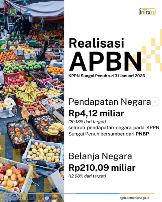 Sebagai wujud transparansi dan akuntabilitas pengelolaan keuangan negara, KPPN Sungai Penuh menyampaikan realisasi APBN hingga 31 Januari 2026 sebagai berikut: