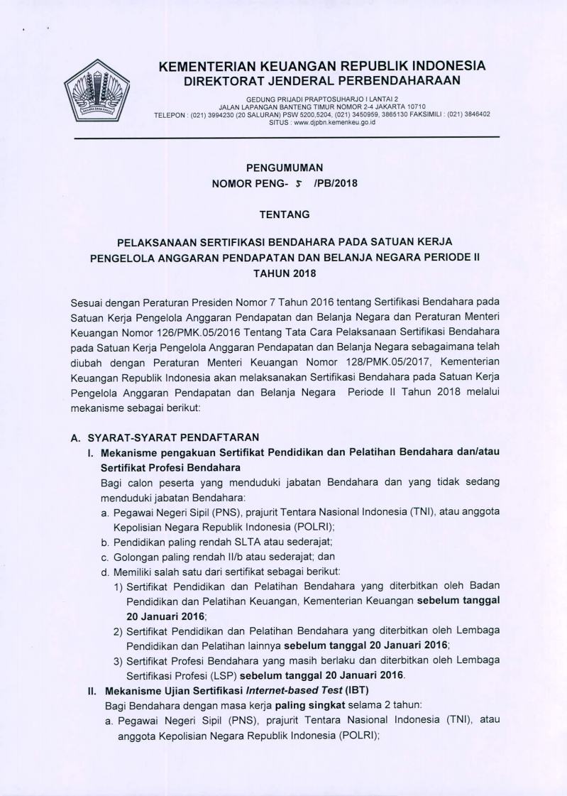 Pengumuman Sertifikasi Bendahara