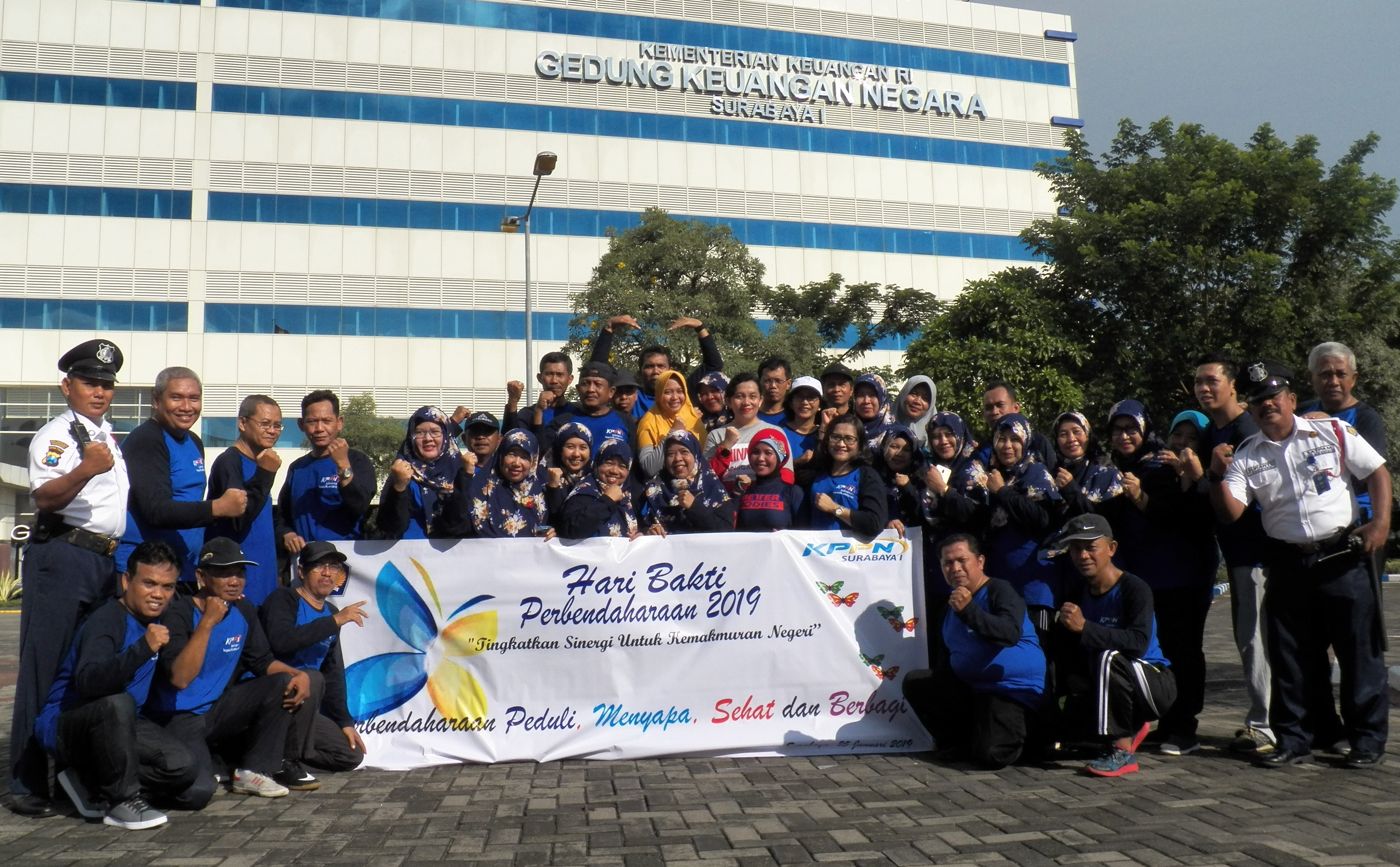 Senam pagi tiap Jumat merupakan kegiatan rutin yang diadakan di lingkungan GKN Surabaya I. Namun, senam pagi di Hari Bakti Perbendaharaan 2019 terasa berbeda. Usai senam pagi, para pegawai KPPN Surabaya I melakukan kerja bakti di halaman GKN Surabaya I sebagai bentuk kepedulian pada lingkungan kerja.