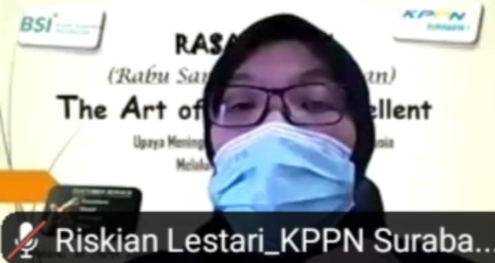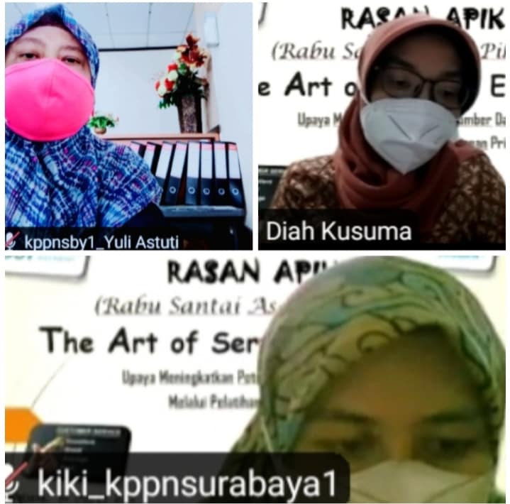 Hari Rabu, 10 Maret 2021 KPPN Surabaya I berkolaborasi dengan Bank Syariah Indonesia (BSI) menggelar acara Rasan Apik. Tema yang diangkat adalah “The Art of Service Excellent”. Pelayanan yang baik merupakan suatu hal penting di era global saat ini. Upaya-upaya untuk meningkatkan potensi pegawai melalui pelatihan pelayanan prima mutlak perlu dilakukan.