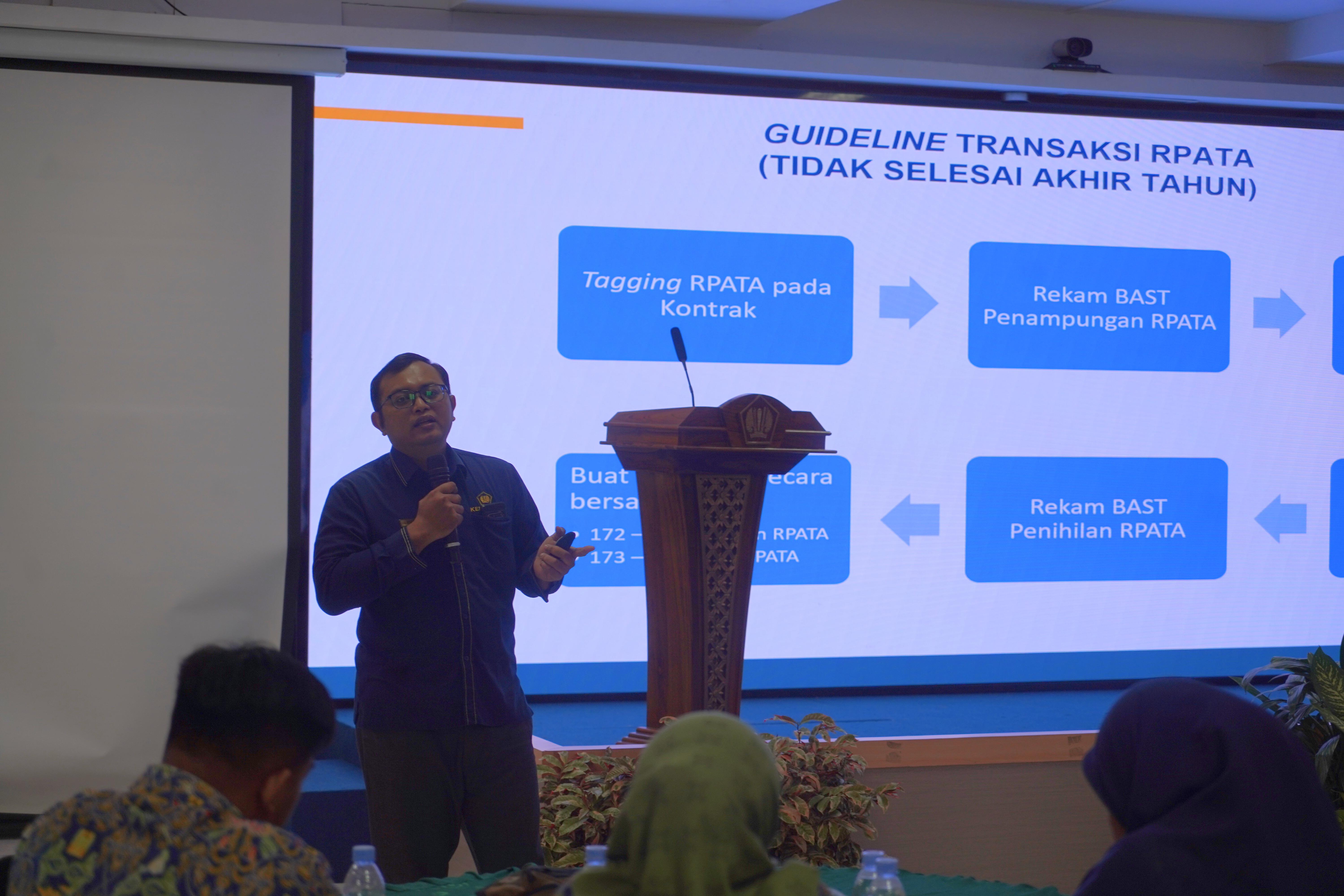 Selanjutnya, peserta memperoleh sosialisasi mengenai Rekening Penampungan Akhir Tahun Anggaran (RPATA). RPATA dijelaskan sebagai rekening milik Bendahara Umum Negara yang digunakan untuk menampung dana pekerjaan yang diperkirakan selesai di akhir tahun atau pekerjaan yang memperoleh kesempatan penyelesaian melampaui tahun anggaran. Mekanisme penampungan dana, pemberian kesempatan, penihilan, serta pelaporan dan monitoring dijabarkan secara rinci agar satker dapat melaksanakan pengelolaan anggaran akhir tahun secara tertib, akuntabel, dan sesuai regulasi.