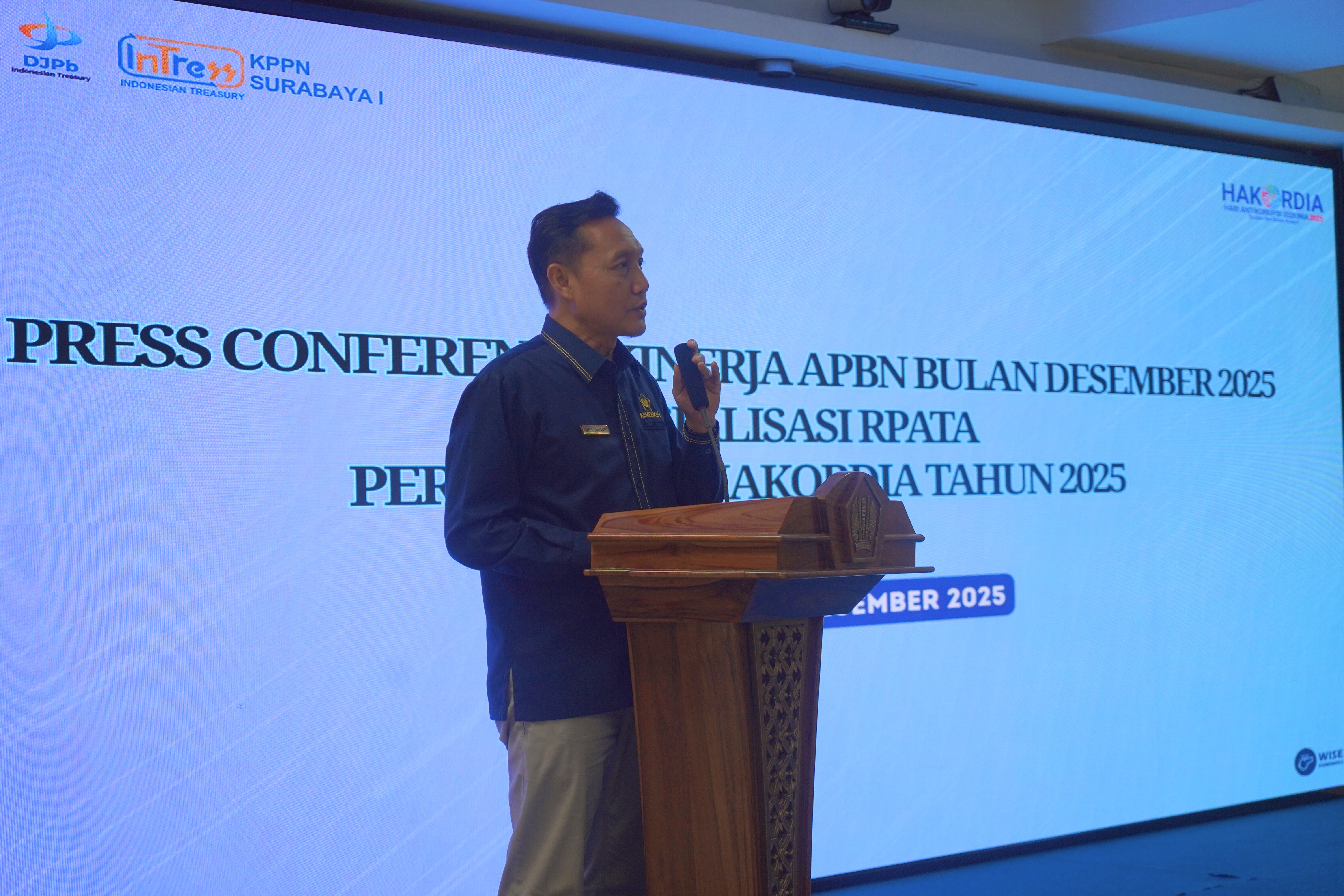 KPPN Surabaya I menyelenggarakan Press Conference Kinerja APBN Bulan Desember 2025 yang dirangkaikan dengan Sosialisasi RPATA dan Peringatan HAKORDIA Tahun 2025 sebagai bentuk komitmen terhadap transparansi pengelolaan keuangan negara, penguatan integritas, serta peningkatan pemahaman satuan kerja atas kebijakan strategis akhir tahun anggaran. Kegiatan ini dilaksanakan pada Rabu, 10 Desember 2025 di Aula Majapahit Gedung Keuangan Negara I Surabaya dan diikuti oleh para Kuasa Pengguna Anggaran (KPA) satker mitra kerja KPPN Surabaya I.