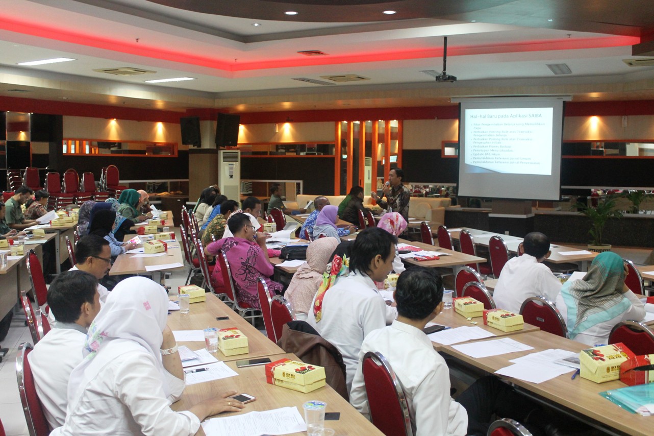 Bimbingan teknis terkait aplikasi dilakukan oleh Saudara Rizki Aprianto. Materi yang disampaikan meliputi overview Aplikasi, update SAIBA, proses bisnis SAIBA, dokumen sumber, saldo awal, jurnal balik dan jurnal standar.