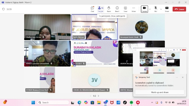 Kamis, 14 Agustus 2025 KPPN Surabaya II mengadakan kegiatan sosialisasi informasi digipay khususnya kepada Satuan Kerja yang masih belum memiliki user digipay. Dari total 116 Satuan Kerja yang memiliki UP Aktif, terdapat 27 Satker yang belum memiliki user digipay (0 user). Oleh karena itu, dalam rangka mengakselerasi penggunaan digipay satker khususnya kepada satker yang belum memiliki user digipay, KPPN Surabaya II mengadakan kegiatan Surabaya II Klasik dengan Topik Registrasi Digipay User Admin Satker pada Satker Mitra KPPN Surabaya II.