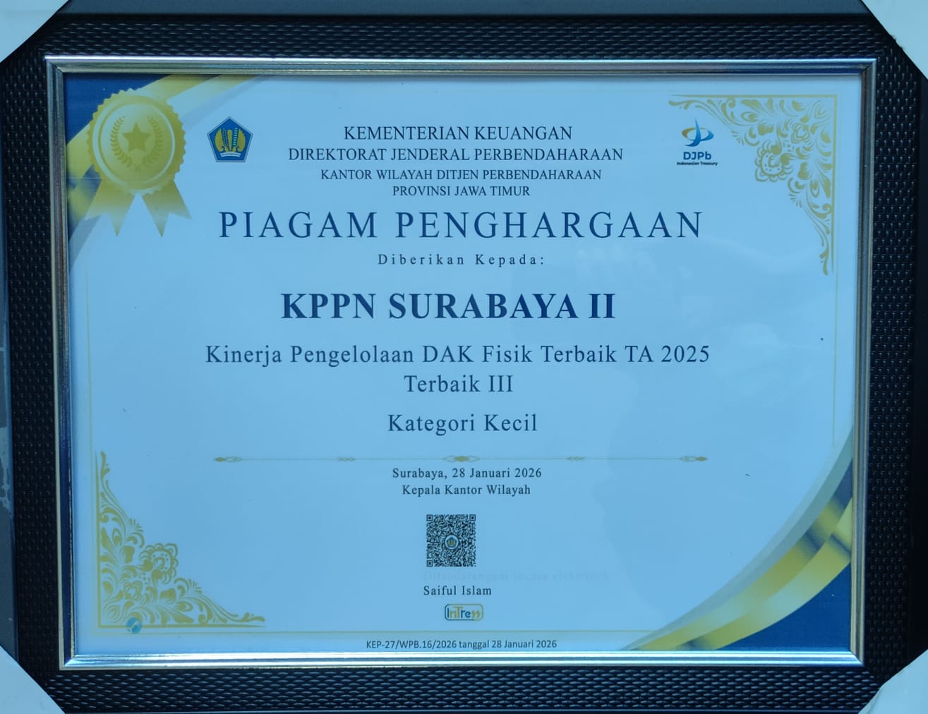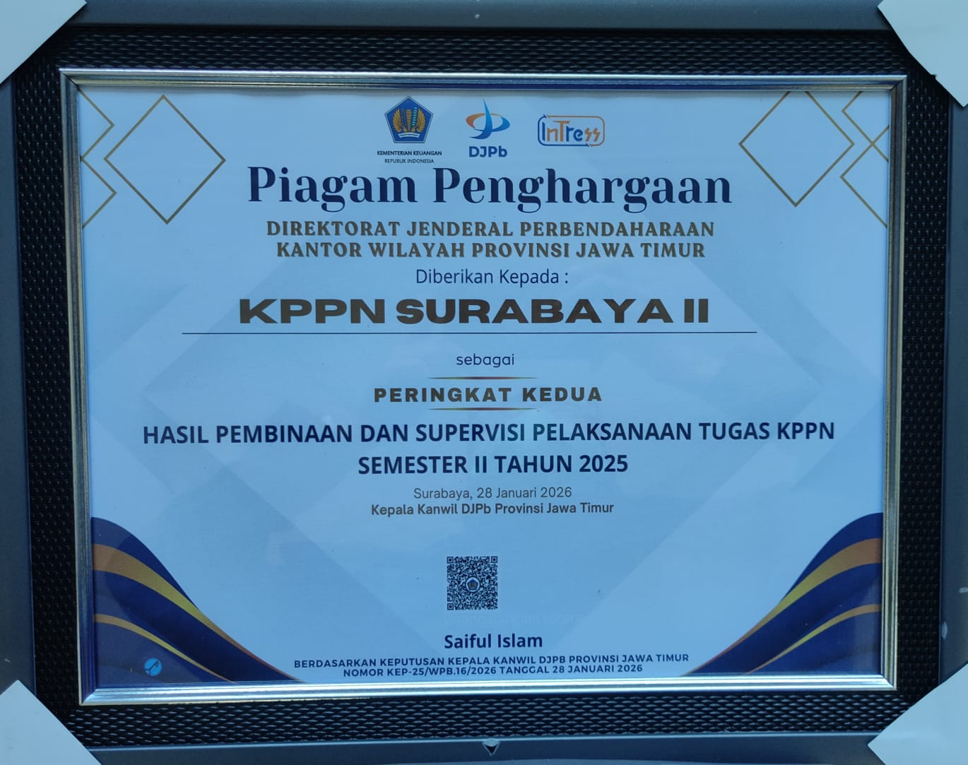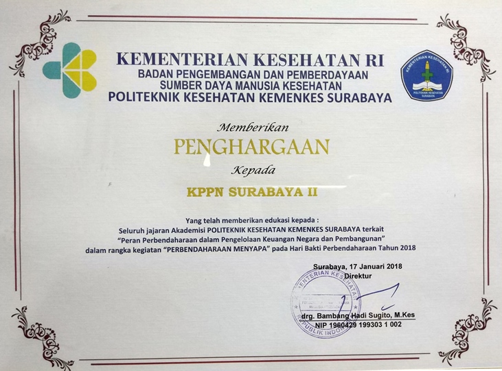 Berikut daftar penghargaan yang diraih oleh KPPN Surabaya II