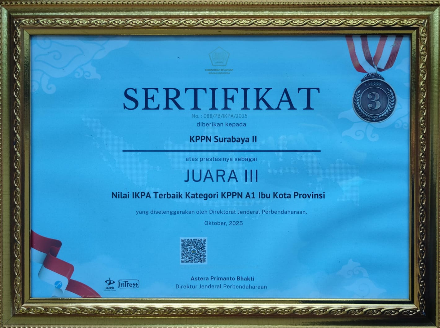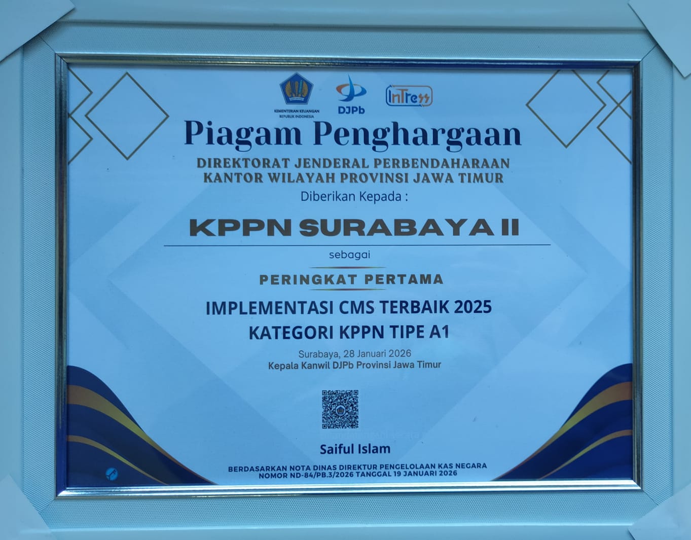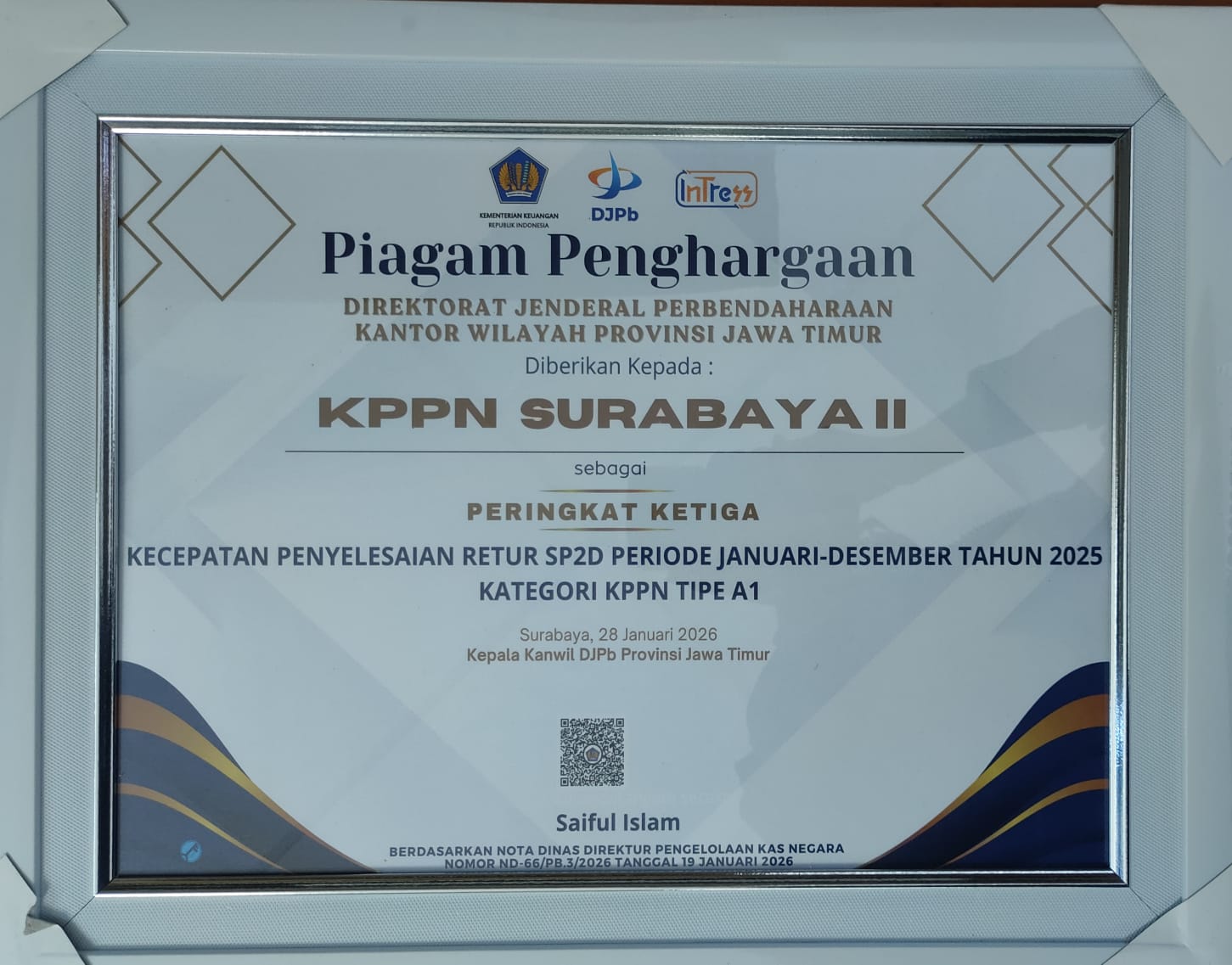 Berikut daftar penghargaan yang diraih oleh KPPN Surabaya II