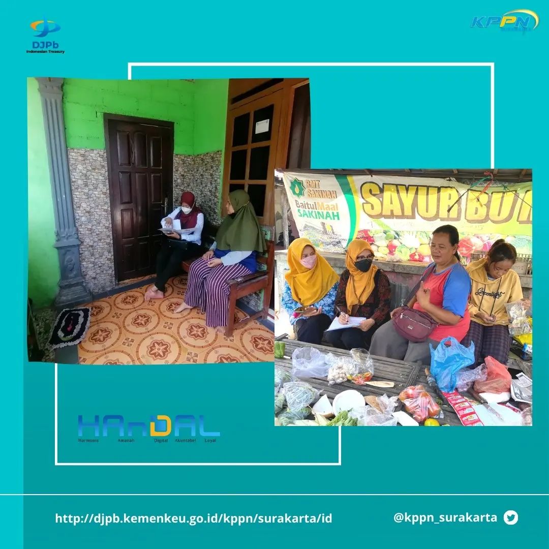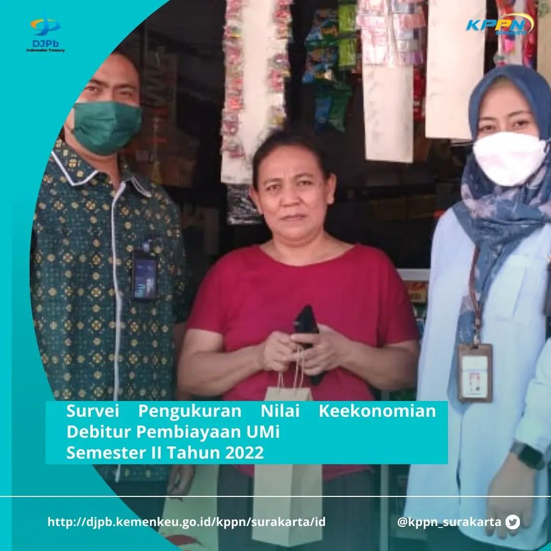 KPPN Surakarta, Jumat, 23 September 2022, Dalam rangka pemantauan terhadap pelaksanaan pembiayaan Ultra Mikro (UMi), KPPN Surakarta telah melaksanakan Survei Pengukuran Nilai Keekonomian Debitur Semester II Tahun 2022. Survei dilaksanakan dengan menggunakan teknik wawancara melalui kunjungan secara langsung, terdiri dari Survei Baseline pada 7 Debitur dan Survei Endline pada 4 Debitur. KPPN Surakarta didampingi oleh Penyalur Pembiayaan UMi yaitu PT. Pegadaian dan PNM dalam melaksanakan survei tsb. Survei dilakukan terhadap 3 unsur: Nilai keekonomian pribadi, Nilai keekonomian usaha dan Nilai keuangan inklusif. Dengan adanya pengukuran nilai keekonomian debitur, KPPN Surakarta dapat mengukur bagaimana dampak pembiayaan UMi terhadap debitur.