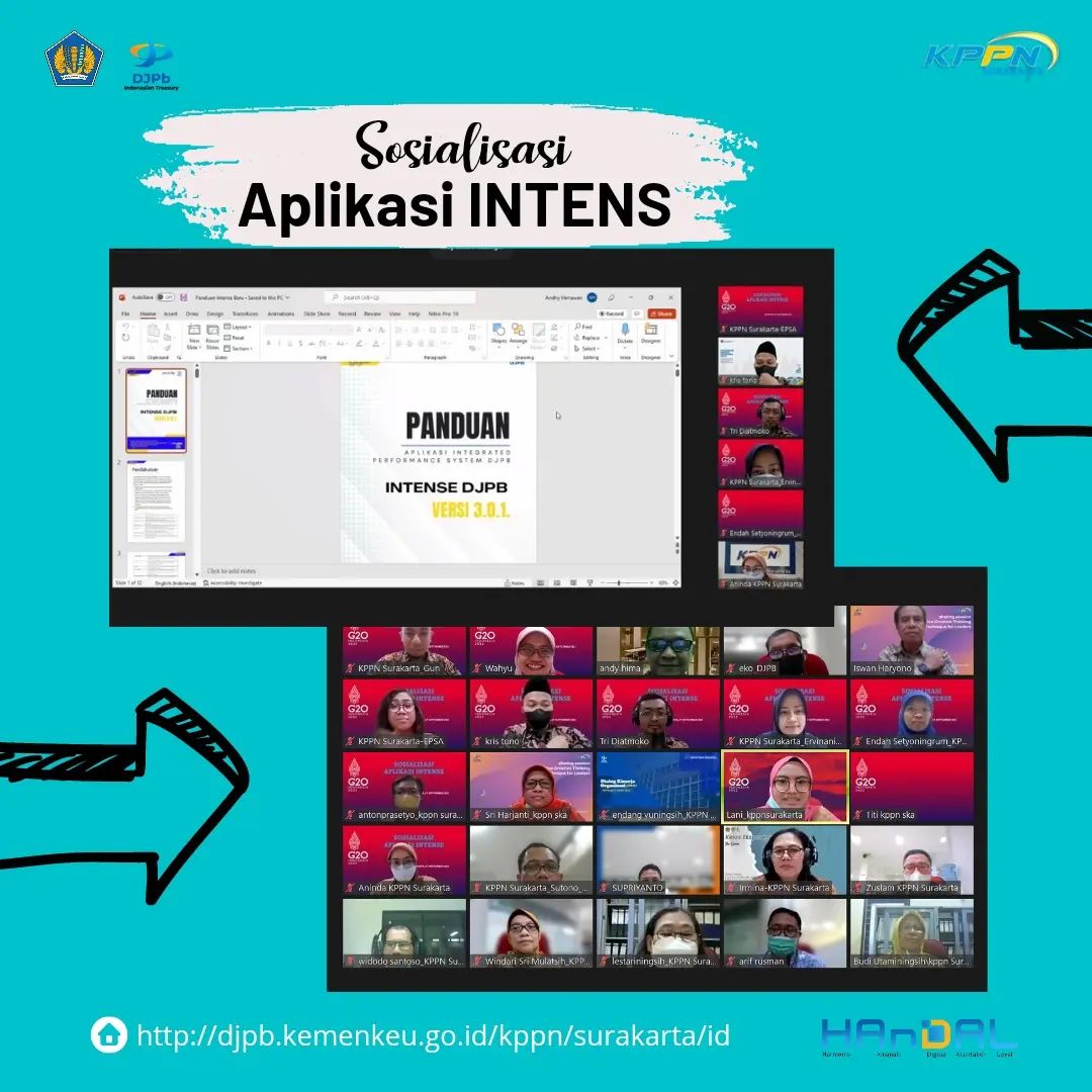 KPPN Surakarta, Selasa, 27 September 2022, KPPN Surakarta menyelenggarakan sosialisasi tentang Aplikasi INTENSE (Integrated Performance System DJPb) secara virtual kepada seluruh pegawai dan pejabat. Sosialiasi Aplikasi INTENSE ini menjadi upaya familiarisasi tentang salah satu inovasi DJPb dalam hal pengelolaan kinerja organisasi dan individu yang bertujuan untuk meningkatkan kualitas pengelolaan kinerja pada seluruh unit kerja, baik kinerja organisasi maupun kinerja pegawai. Sebagai salah satu fungsinya, seluruh pegawai dapat mengakses Aplikasi INTENSE untuk mengunggah dokumen kinerja secara lengkap agar penatausahaan dilakukan secara digitalisasi dalam periode tahunan.