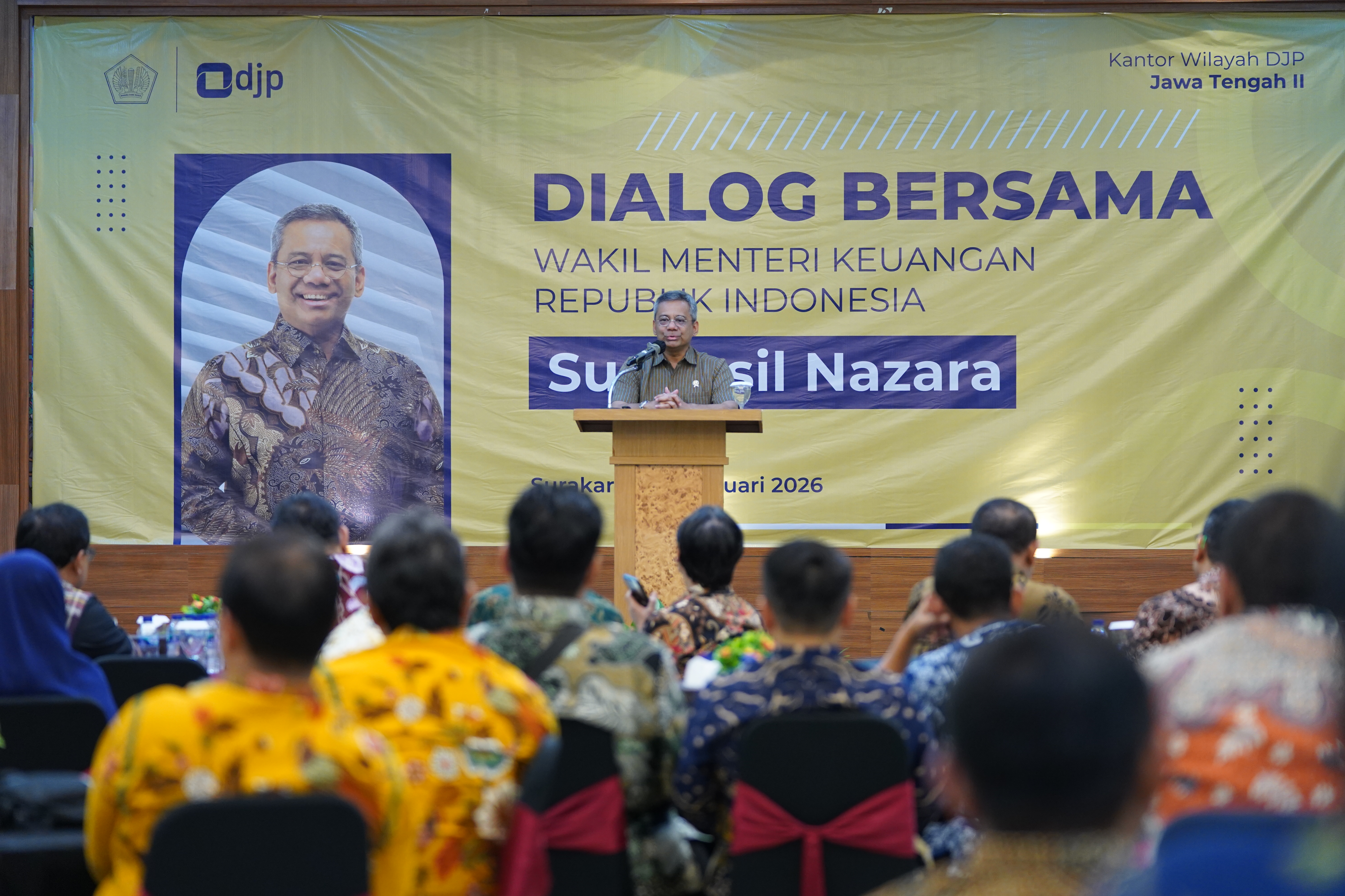 Surakarta — Dalam rangkaian kunjungan kerjanya di Kota Surakarta, Kamis, 12 Februari 2026, Wakil Menteri Keuangan Republik Indonesia, Suahasil Nazara, menyempatkan diri berdialog dengan jajaran Kementerian Keuangan wilayah Solo Raya melalui kegiatan Dialog Kemenkeu Satu Solo Raya. Kegiatan ini menjadi ruang strategis untuk memperkuat pemahaman bersama atas arah kebijakan fiskal serta tantangan pengelolaan keuangan negara ke depan.