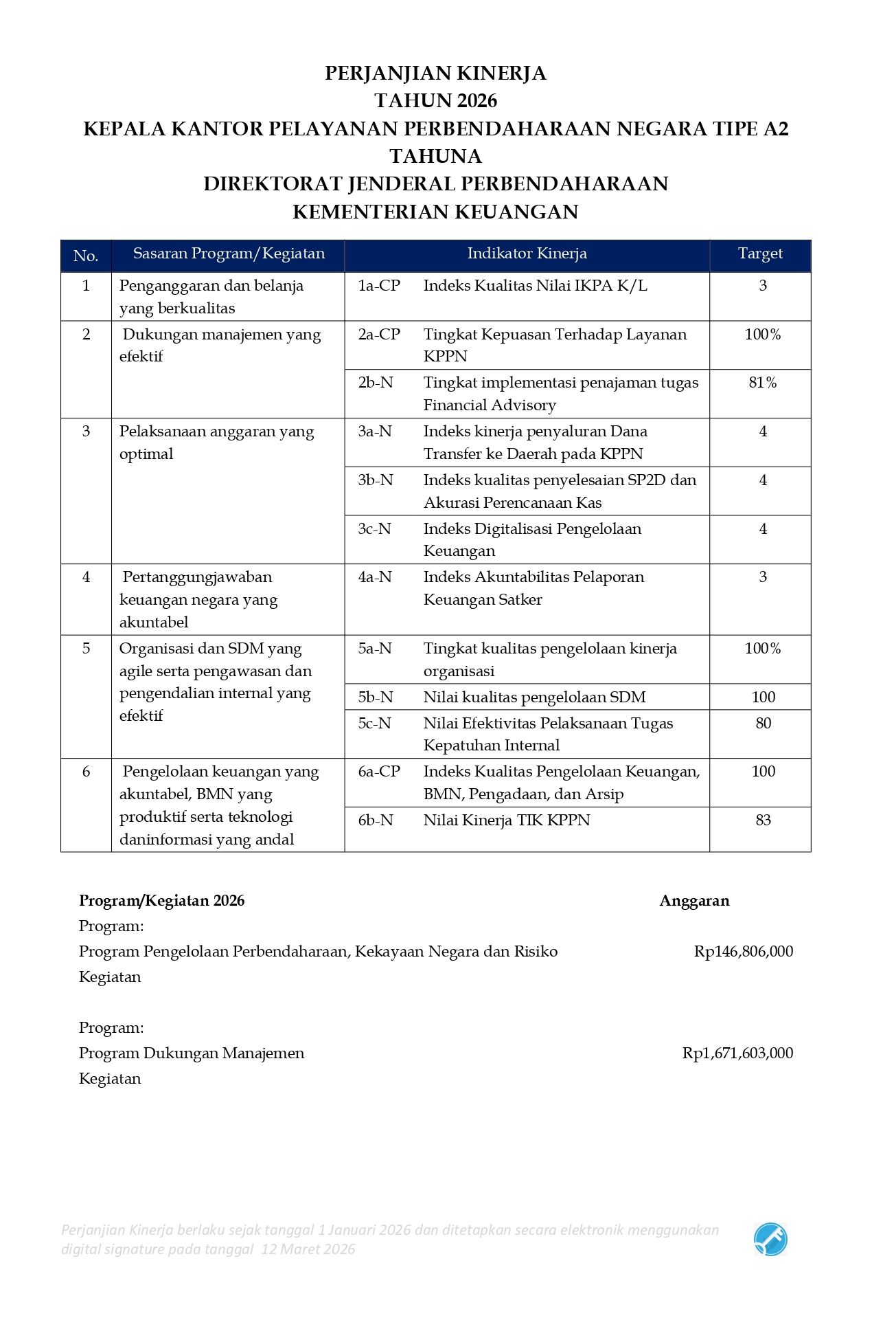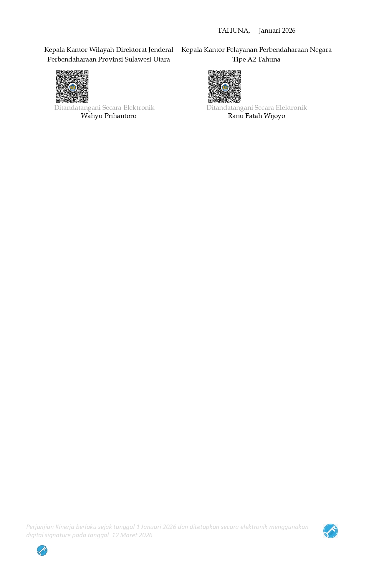 Perjanjian Kinerja KPPN Tahuna Tahun 2026