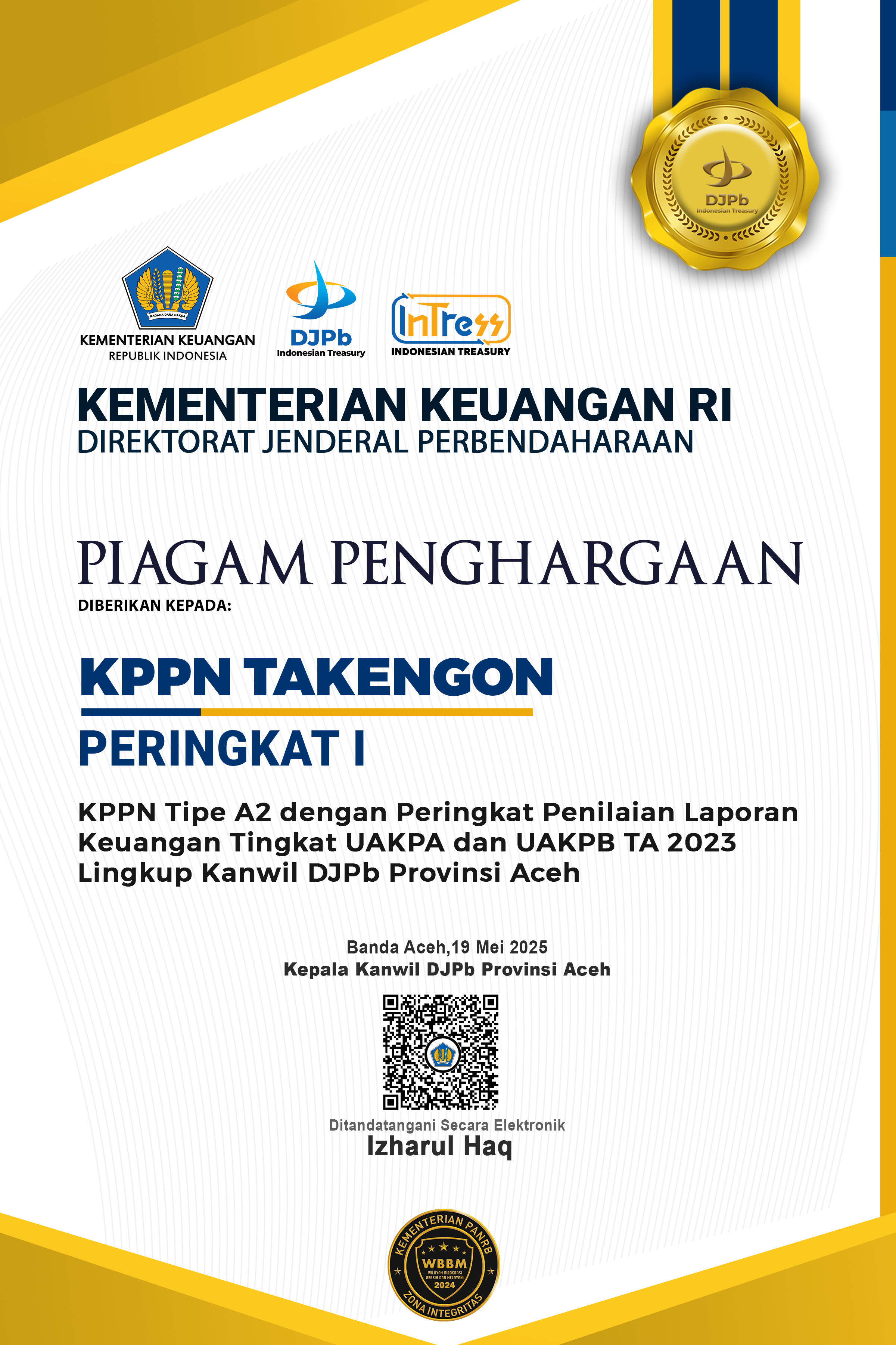 Peringkat I KPPN Tipe A2 dengan Peringkat Penilaian Laporan Keuangan Tingkat UAKPA dan UAKPB TA 2023 Lingkup Kanwil DJPb Provinsi Aceh