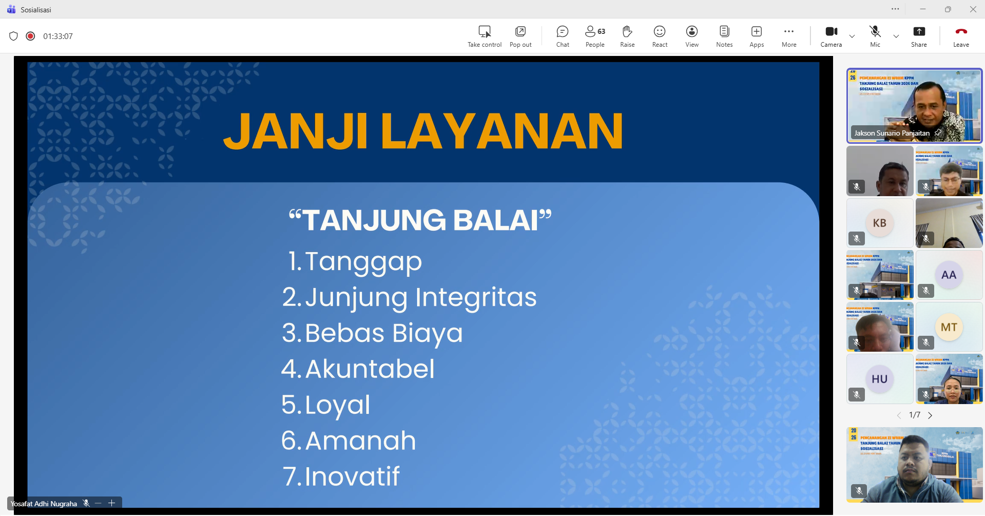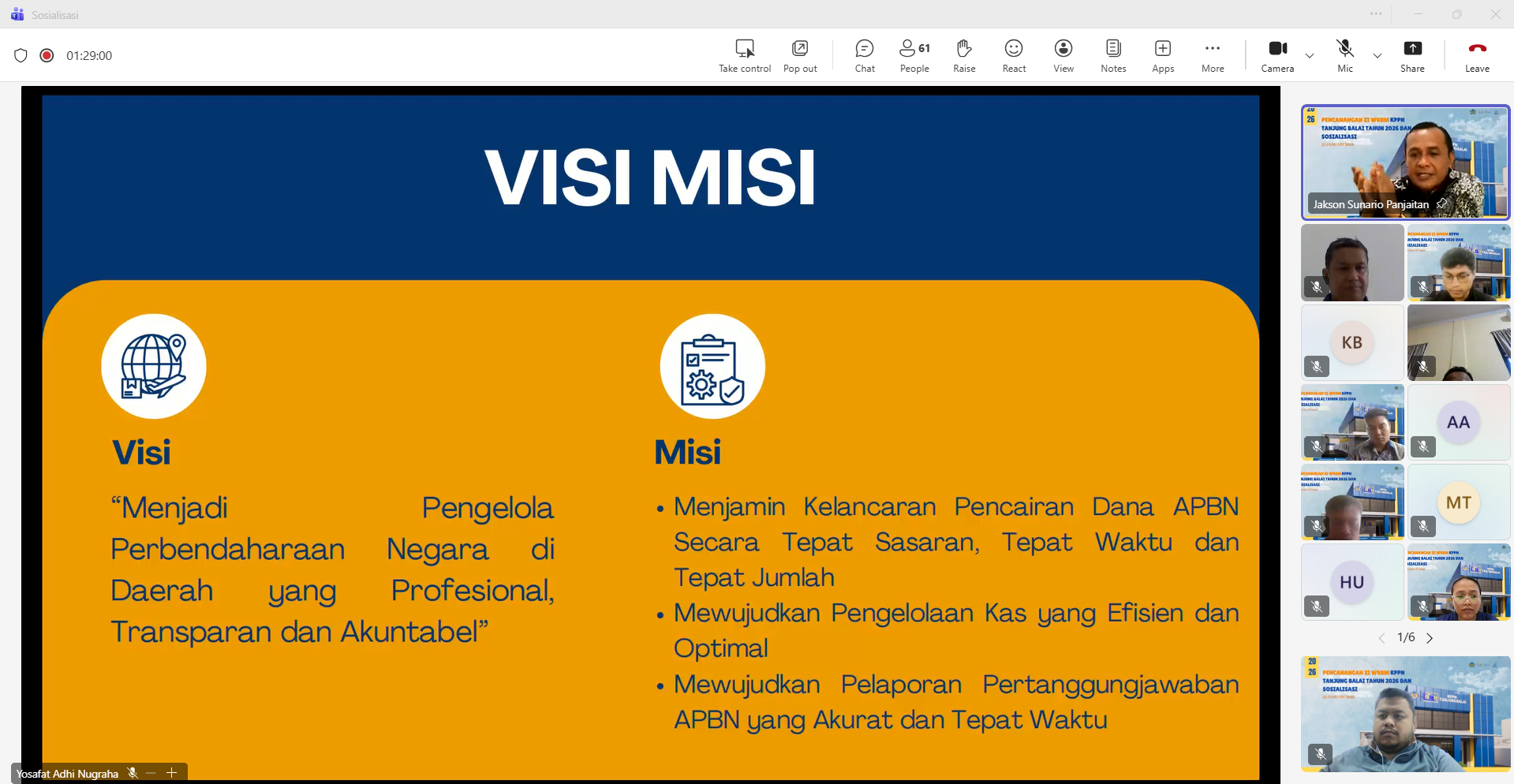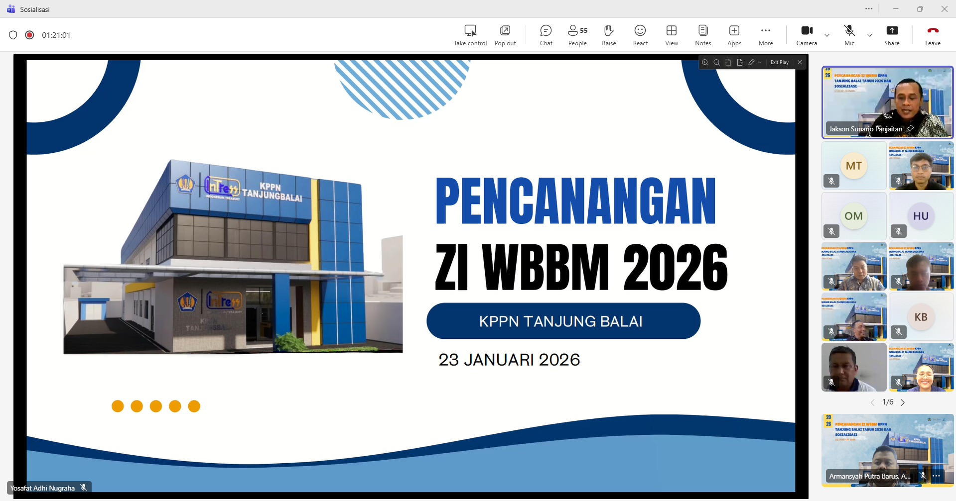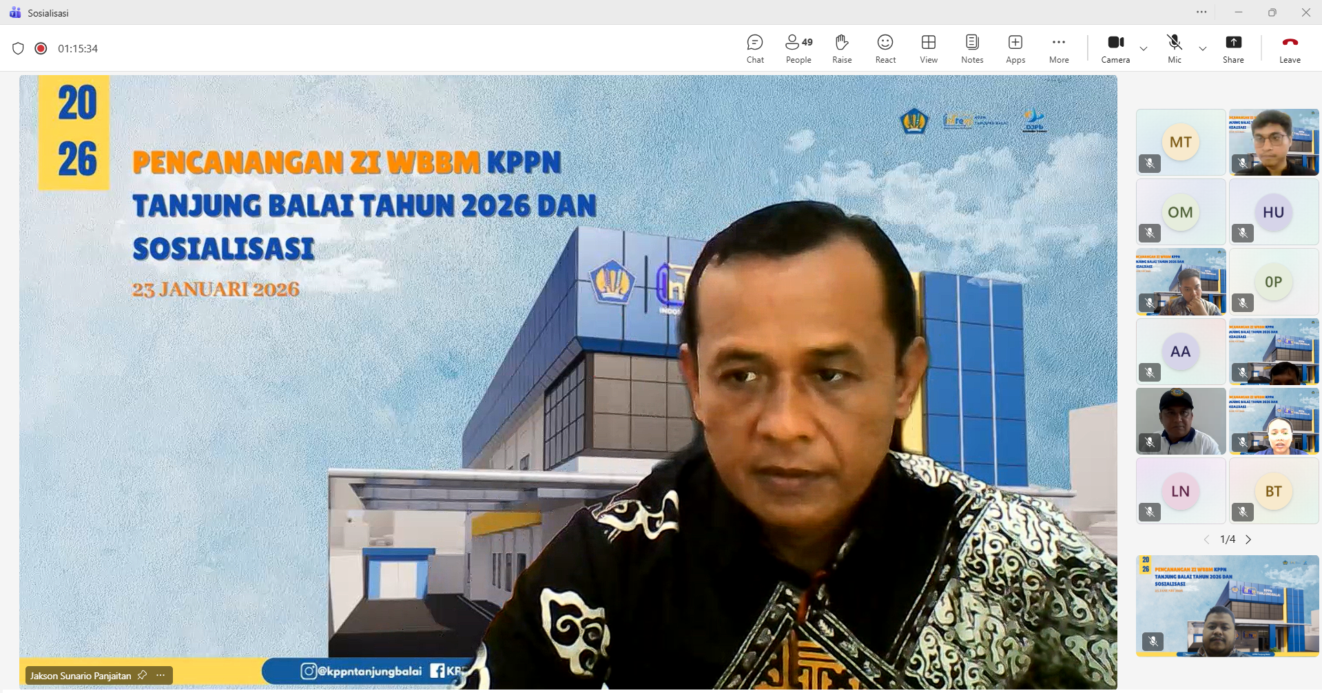 Dalam rangka pembangunan zona integritas (ZI) Menuju WBBM, KPPN Tanjunt Balai melakukan pencanangan ZI menuju WBBM pada hari Jumat tanggal 23 Januari 2026, pukul 09.00 WIB melalui media Zoom. Kegiatan tersebut diikuti oleh satuan kerja lingkup KPPN Tanjung Balai