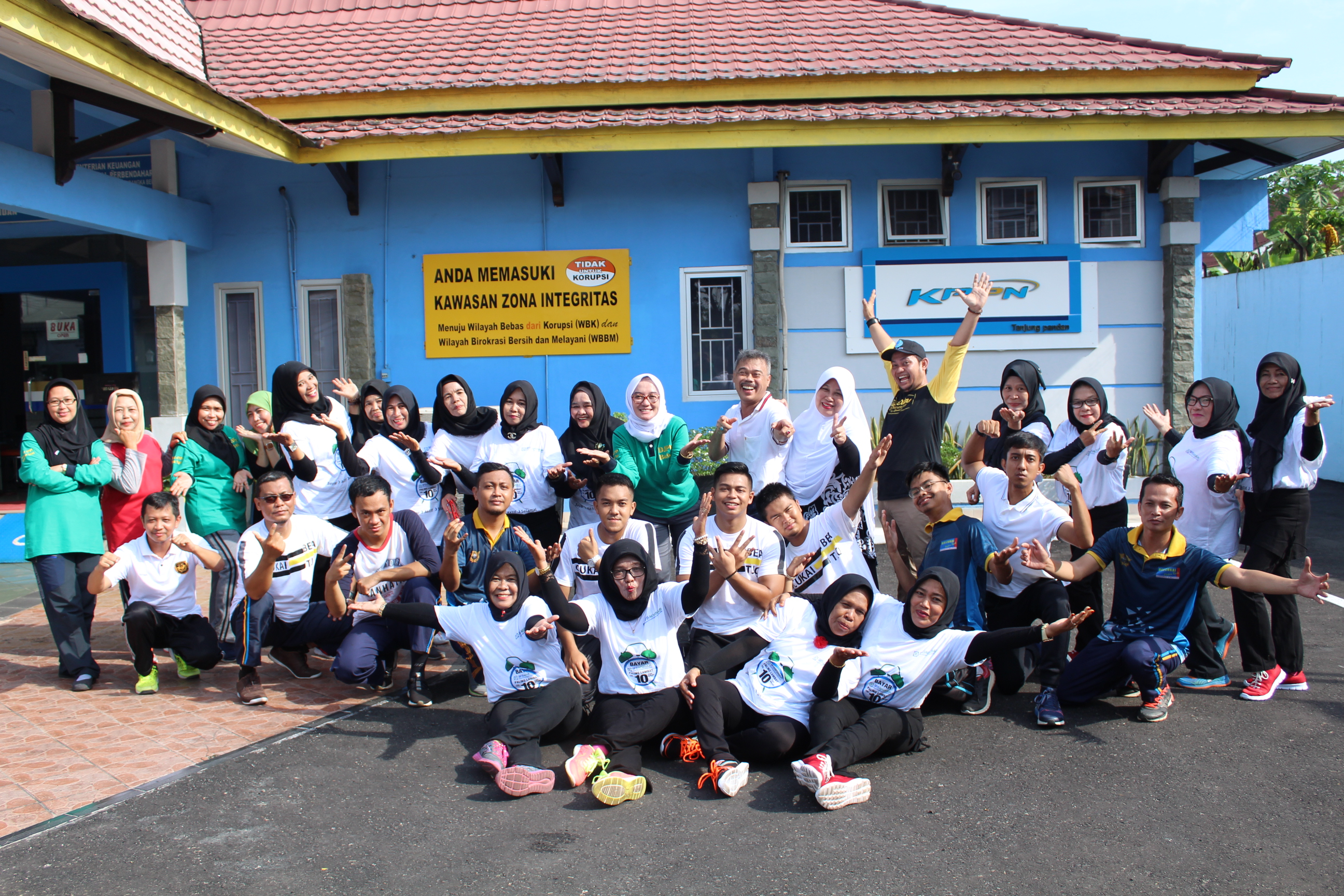 Diakhir kegiatan, Kepala KPPN Tanjung Pandan, Rd. Yen Yen Nuryeni mengajak seluruh peserta senam untuk melakukan foto bersama di depan papan Zona Integritas dengan spirit menularkan gerakan WBK kepada masyarakat sebagai bukti keseriusan KPPN Tanjung Pandan menyongsong amanah kantor vertikal yang ditunjuk sebagai kantor yang melaksanakan program Wilayah Bebas dari Korupsi (WBK). (OCM)