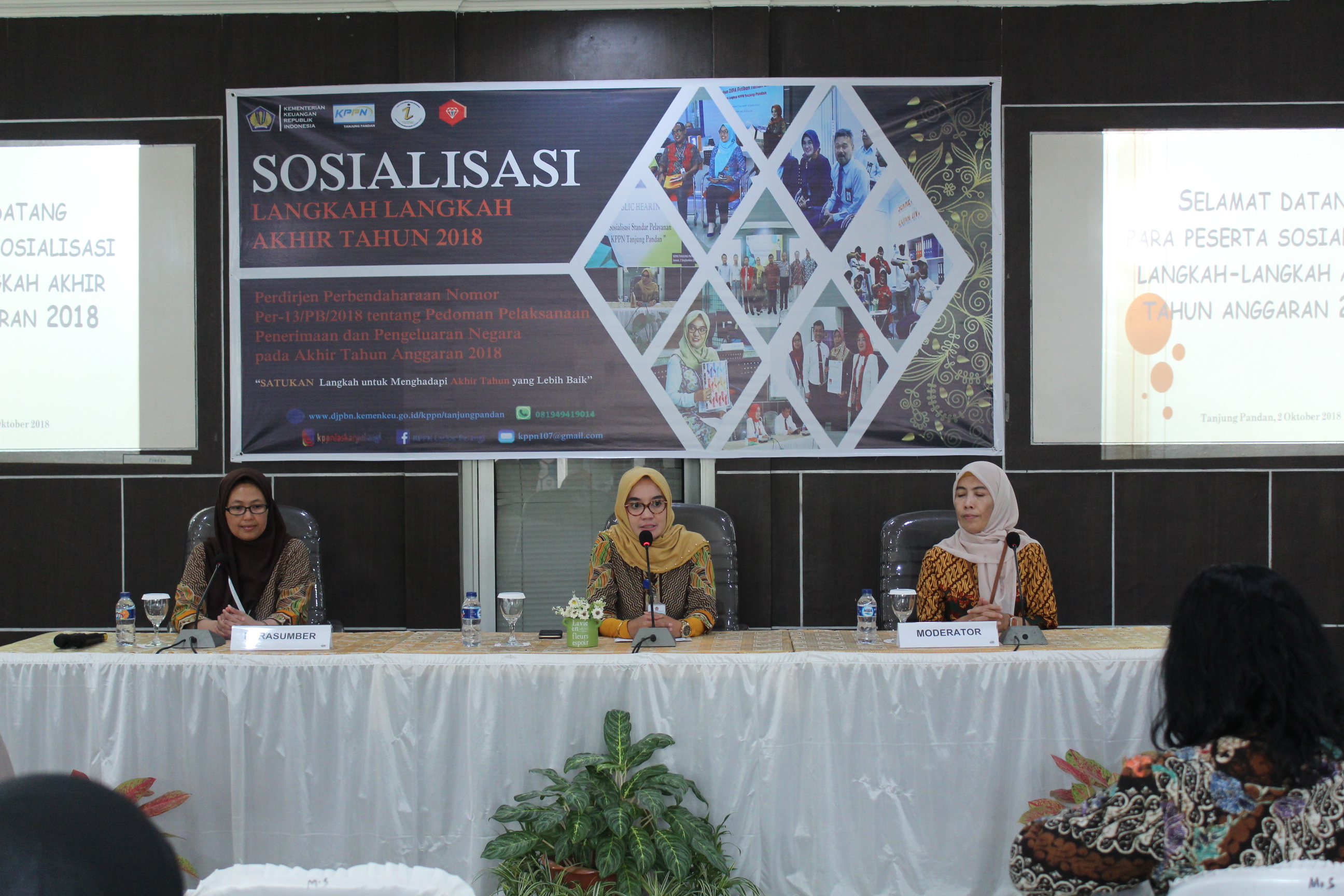 Acara Sosialisasi yang diawali dengan sambutan sekaligus pembukaan oleh Rd Yen Yen Nuryeni, Kepala KPPN Tanjung Pandan. Pada intinya, Kepala KPPN Tanjung Pandan menyampaikan bahwa kegiatan ini berlangsung guna persiapan menghadapi akhir tahun 2018 dan mengingat telah ditetapkannya PER-13/PB/2018 tentang Pedoman Pelaksanaan Penerimaan dan Pengeluaran Negara pada Akhir Tahun Anggaran 2018.