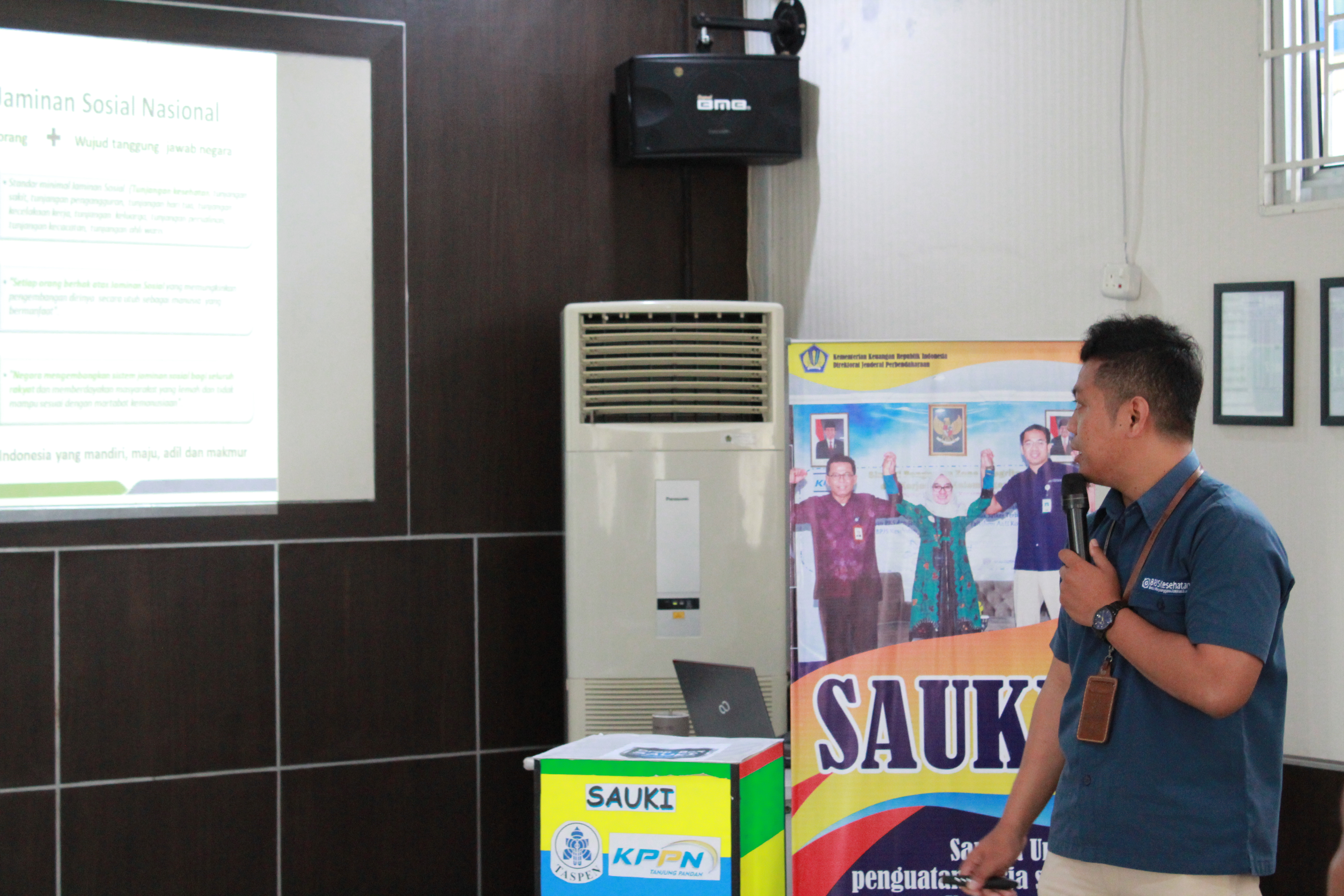 Dalam rangka mewujudkan Wilayah Birokrasi Bersih dan Melayani (WBBM) serta mendukung program Pengarusutamaan Gender (PUG), KPPN Tanjung Pandan meningkatkan excellent service melalui penguatan kerja sama kelembagaan dengan PT Taspen (Persero) Cabang Pangkal Pinang dan BPJS Kesehatan Cabang Pangkalpinang untuk menyediakan layanan terpadu SAUKI (Sarana untuk Penguatan Kerja Sama Kelembagaan antar Instansi) dengan mengundang seluruh satker mitra kerja. Acara berlangsung di aula KPPN, Kamis (20/6) lalu.