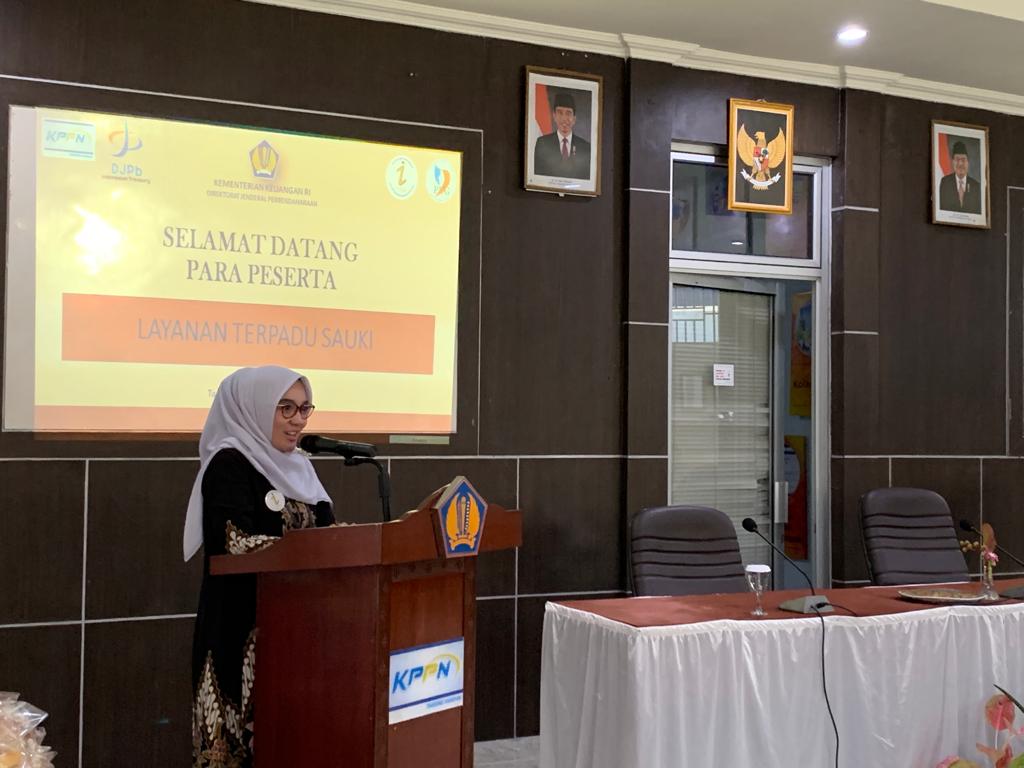 Kegiatan Layanan terpadu SAUKI diawali dengan penyampaian laporan pelaksanaan Layanan Terpadu SAUKI oleh Kepala KPPN, Rd. Yen Yen Nuryeni. Disampaikan layanan terpadu SAUKI telah dilaksanakan pertama kali pada bulan Maret 2019 sebagai wujud tindak lanjut atas penandatanganan PKS KPPN dengan BPJS dan PT Taspen pada bulan Januari 2019 dan telah diagendakan untuk dilaksanakan sebanyak 5 kali pada tahun 2019 serta disediakan drop box sebagai layanan berkesinambungan.
