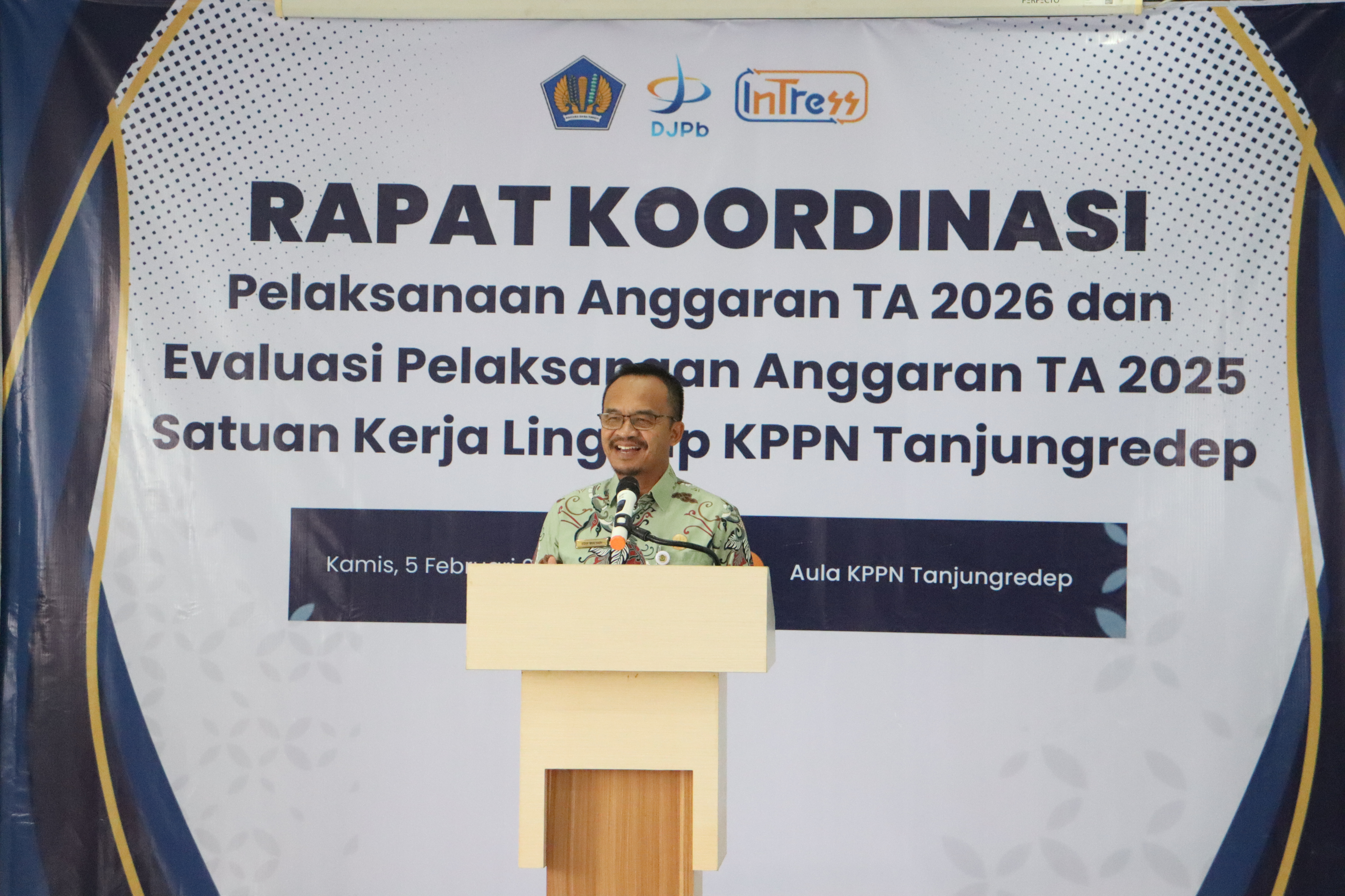 - Pada tahun 2026, Jumlah DIPA yang dikelola oleh KPPN Tanjungredep adalah sebanyak 25 satker dengan pagu sejumlah Rp1,89 Triliun dan telah terealisasi s.d. 31 Januari 2026 sebesar Rp198,3 Miliar (10,48%).