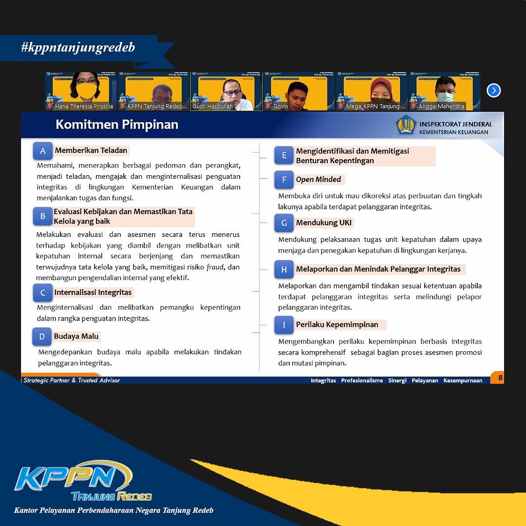 Dalam rangka evaluasi penyaluran DAK Fisik dan Dana Desa, KPPN Tanjung Redeb mengadakan Rapat Koordinasi Akselerasi dan Optimalisasi Penyaluran DAK Fisik Tahap 2 dan Dana Desa Tahun Anggaran 2021 melalui media daring (12/10).