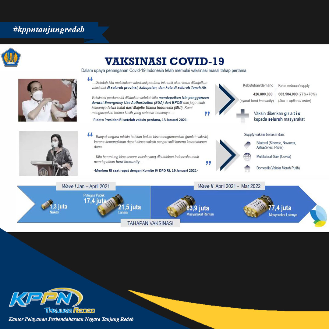 Pemerintah telah melaksanakan program Vaksinasi Covid-19 dan menetapkan kebijakan strategis APBN 2021 untuk menanggulangi pandemi Covid-19 dan Pemulihan Ekonomi Nasional. Serangkaian kebijakan yang telah diambil memperkuat pemulihan ekonomi di awal tahun 2021.