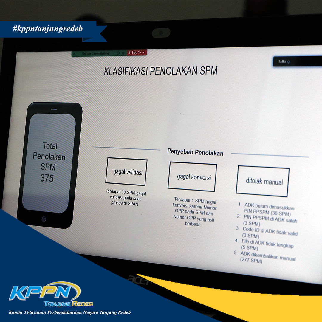 Sosialisasi dilaksanakan secara daring dihadiri oleh mitra kerja yang terdiri dari PPK dan Bendahara Pengeluaran satker, Kanwil DJPb Prov. Kaltim, dan Pegawai KPPN Tanjung Redeb.
