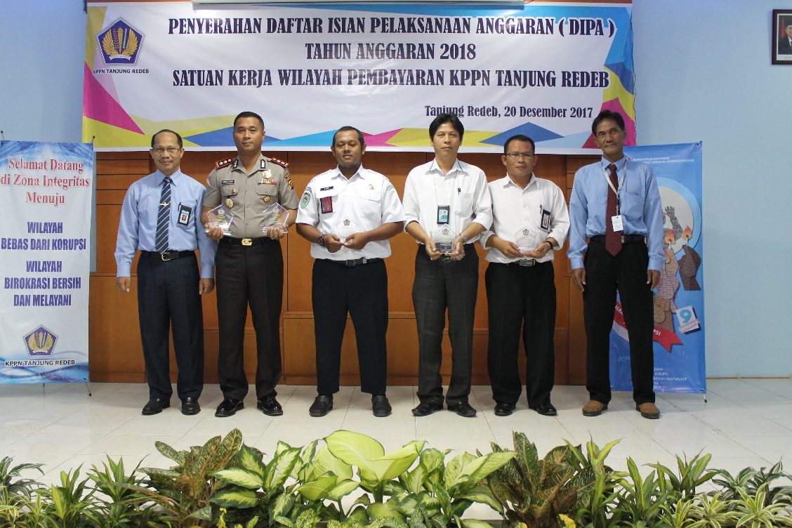 Sebagai bentuk apresiasi atas sinergi dan prestasi satuan kerja selama tahun 2017, dalam kesempatan ini Kanwil Ditjen Perbendaharaan Provinsi Kalimantan Timur bersama KPPN Tanjung Redeb menyerahkan piagam penghargaan dan thropy kepada satuan kerja yang berprestasi. Penghargaan yang terdiri dari 7 kategori yakni: