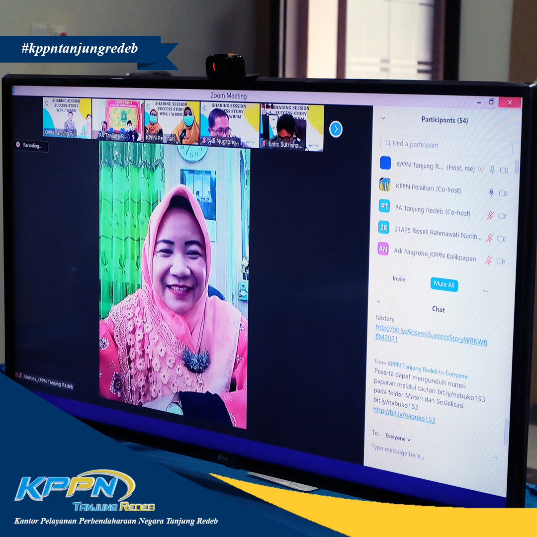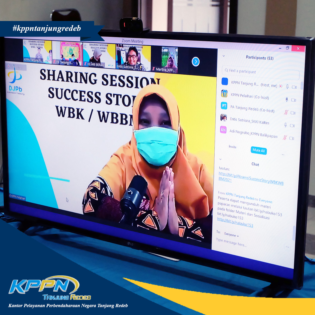 Dalam rangka persiapan penilaian unit kerja berpredikat Wilayah Birokrasi Bersih Melayani (WBBM) tahun 2021, KPPN Tanjung Redeb mengadakan Sharing Session Success Story WBK/WBBM bersama dengan KPPN Pelaihari dan Pengadilan Agama Tanjung Redeb pada tanggal 26 Januari 2021.