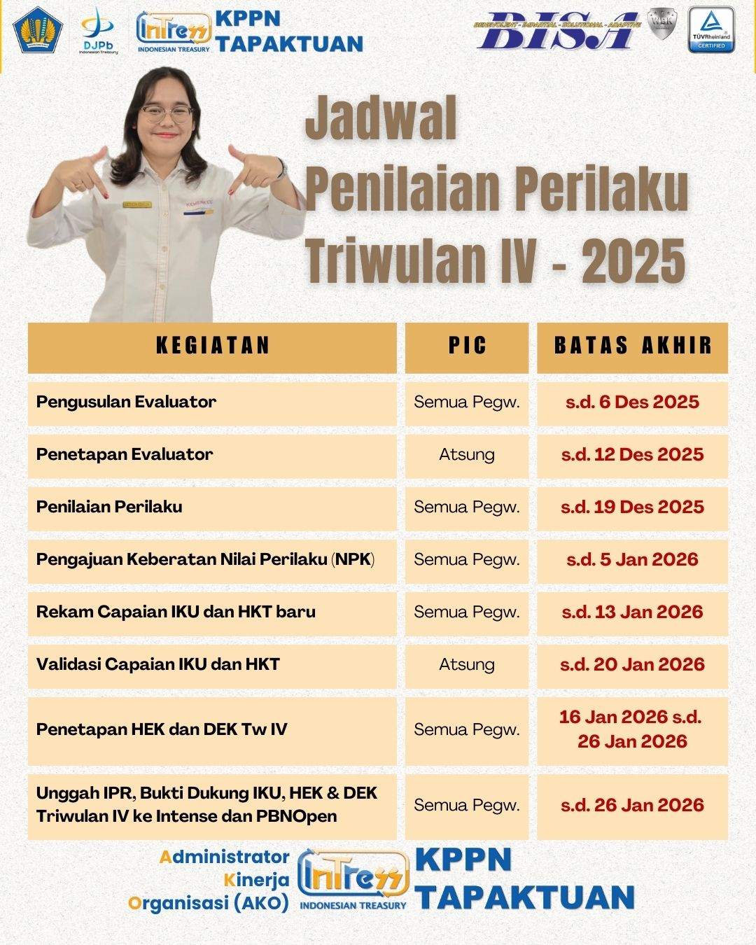 Jadwal Pelaporan Kinerja KPPN Tapaktuan