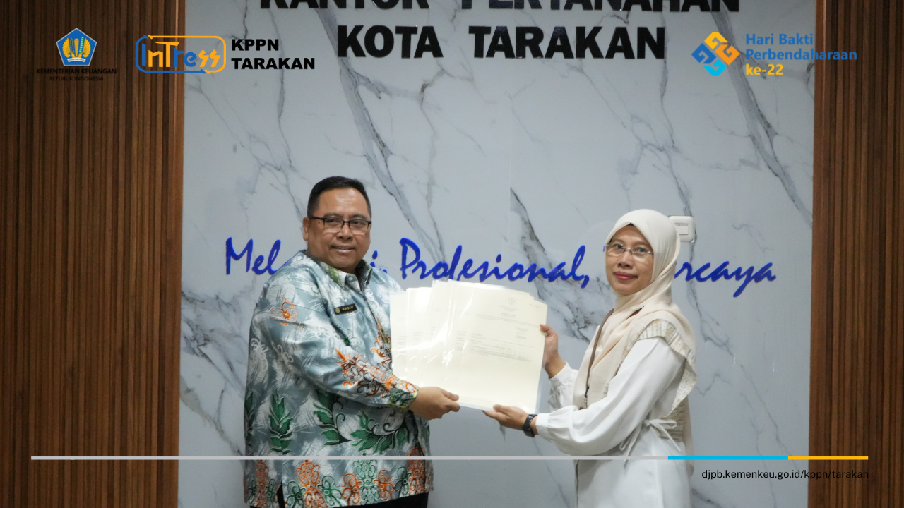 Pada Kamis, 26 Februari 2026, KPPN Tarakan telah menyelesaikan proses pengurusan dokumen pembaruan sertipikat tanah menjadi blanko sistem elektronik melalui Kantor Pertanahan Kota Tarakan. Penyelesaian administrasi tersebut ditandai dengan kegiatan serah terima sertipikat yang dilaksanakan di Kantor Pertanahan Kota Tarakan.