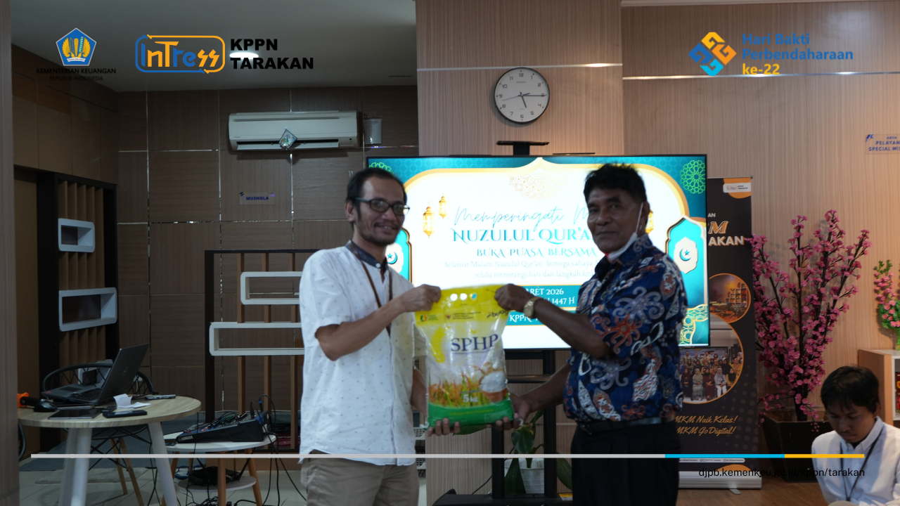 Dalam rangka menyambut peringatan Malam Nuzulul Qur’an di bulan suci Ramadan, Kantor Pelayanan Perbendaharaan Negara (KPPN) Tarakan menyelenggarakan kegiatan Bimbingan Mental dan Kerohanian pada Jumat, 6 Maret 2026 bertempat di Front Office KPPN Tarakan. Kegiatan yang dimulai pada pukul 17.30 WITA tersebut diikuti oleh Kepala Kantor, para pejabat, serta seluruh pegawai KPPN Tarakan yang hadir dengan penuh antusiasme.