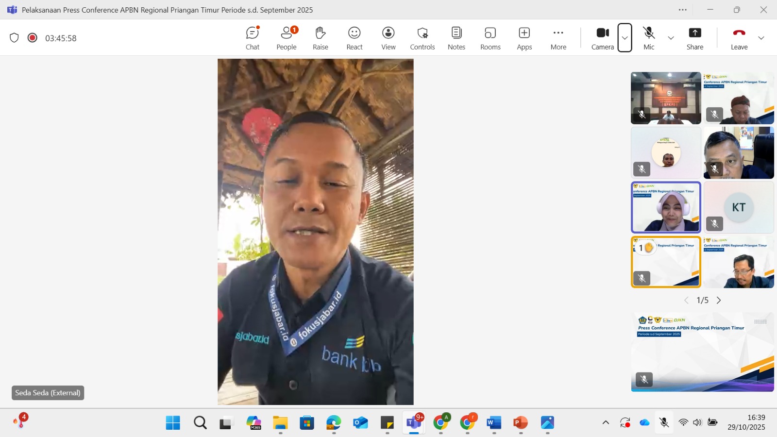 Kegiatan yang dilaksanakan secara daring melalui aplikasi Microsoft Teams ini menjadi bagian dari upaya Kemenkeu menjaga transparansi dan akuntabilitas pelaksanaan Anggaran Pendapatan dan Belanja Negara (APBN) di daerah.