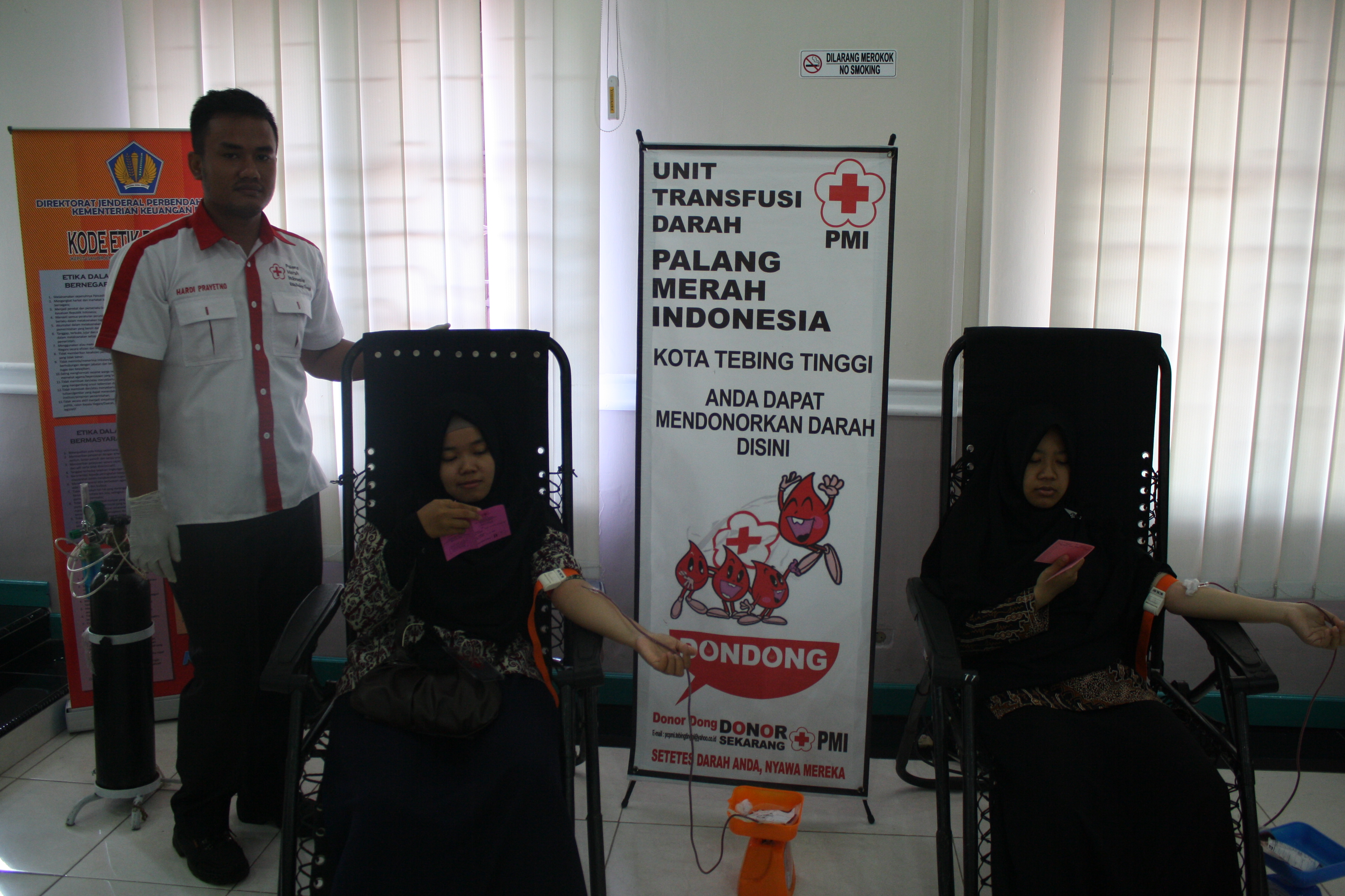 Selain permainan jaman dulu, KPPN Tebing Tinggi juga mengadakan acara Donor Darah yang diselenggarakan di aula KPPN melalui sinergi dengan Palang Merah Indonesia (PMI) setempat. Sebanyak 16 orang yang terdiri dari Pegawai KPPN Tebing Tinggi dan satuan kerja turut berpartisipasi pada kegiatan donor darah ini dengan har apan kantung-kantung darah yang terkumpul kemudian akan didistribusikan ke pasien-pasien yang membutuhkan. “Setetes Darah Anda, Nyawa Mereka” begitu slogan PMI.