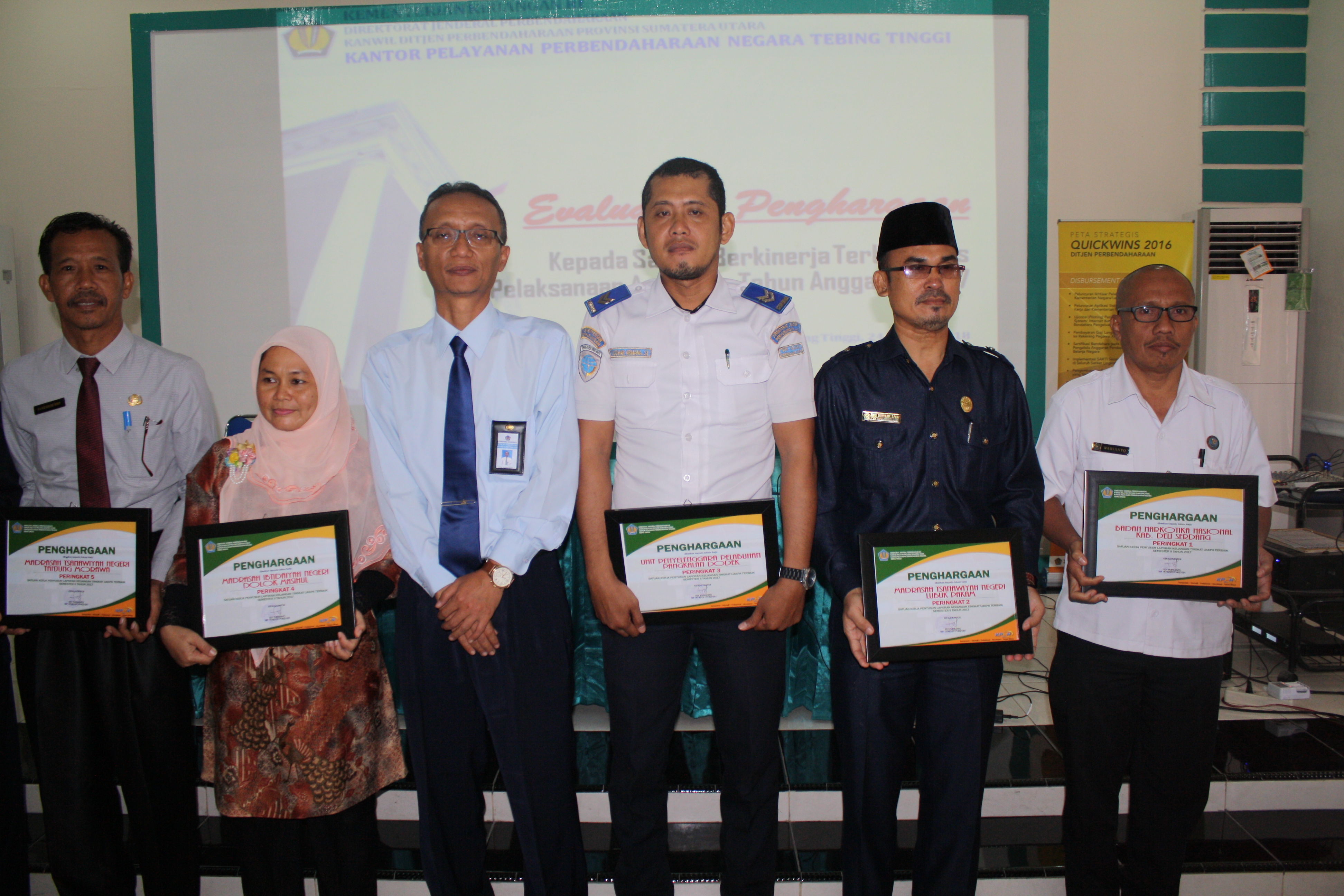 Sebagai bentuk apresiasi terhadap kinerja satuan kerja, KPPN Tebing Tinggi memberikan apresiasi berupa penghargaan kepada Satker berkinerja terbaik periode Semester II Tahun 2017.