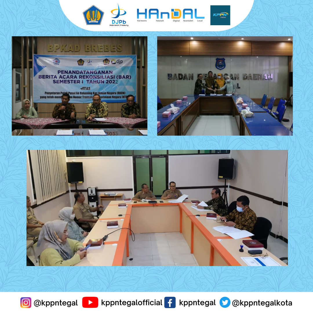 BAR merupakan hasil verifikasi bersama antara pemda, KPPN, dan KPP yang digunakan untuk memastikan kesesuaian jumlah pajak yang disetor dengan jumlah pajak yang dipungut/dipotong maupun jumlah pajak yang telah tercatat di Rekening Kas Negara yang menjadi kewajiban pemda. Menindaklanjuti amanat dalam PMK tersebut, pada hari Selasa (05/07), telah dilakukan rekonsiliasi penyetoran pajak-pajak pusat atas beban APBD periode semester I tahun 2022 secara marathon antara Pemerintah Kota Tegal, Pemerintah Kabupaten Tegal, Pemerintah Kabupaten Brebes, KPPN Tegal, dan KPP Pratama Tegal.