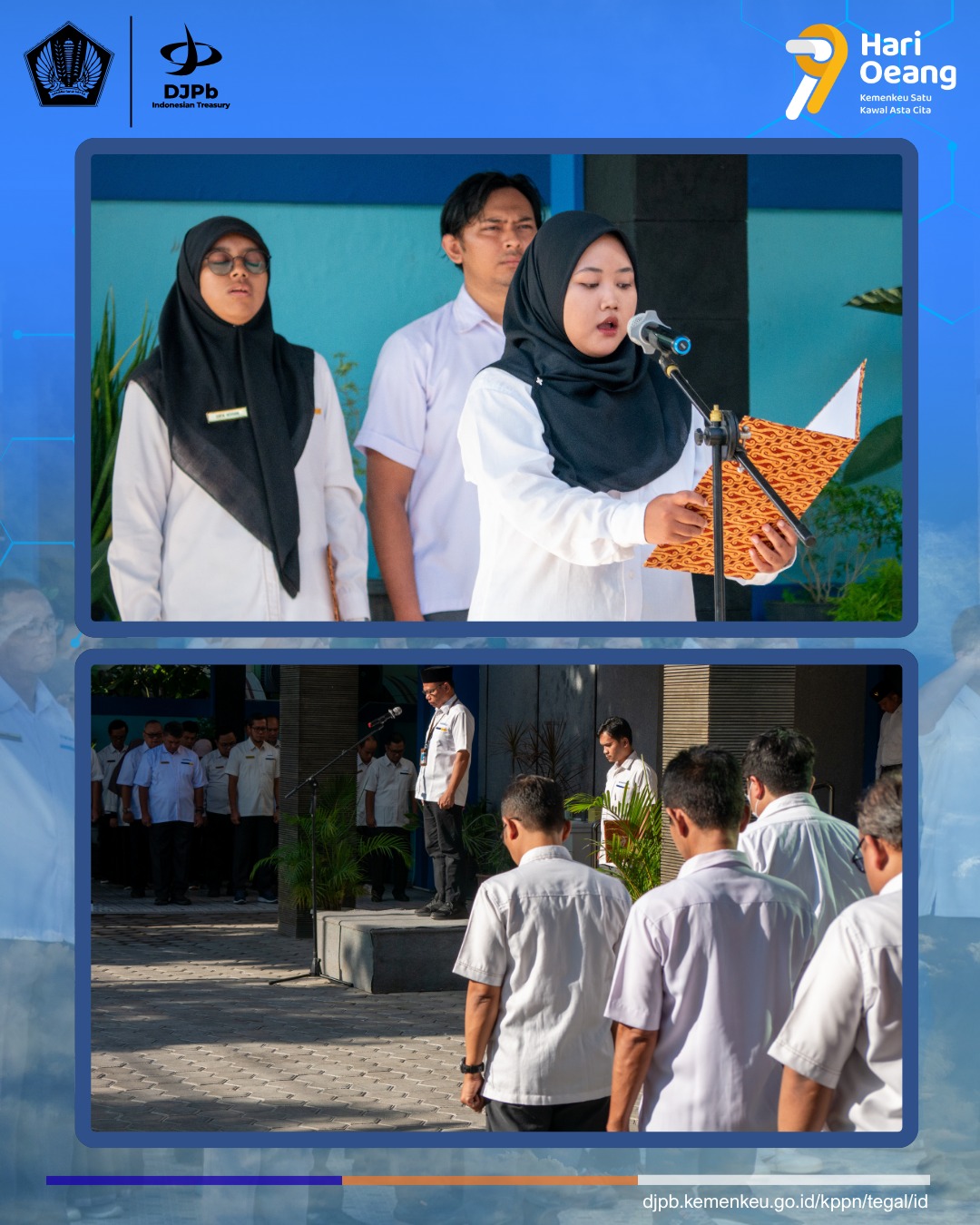 Tegal, 30 Oktober 2025 – Kementerian Keuangan Satu Wilayah Tegal melaksanakan upacara gabungan dalam rangka memperingati Hari Sumpah Pemuda ke-97 serta Hari Oeang Republik Indonesia (HORI) ke-79 yang berlangsung di halaman Kantor KPPN Tegal pada Kamis (30/10).