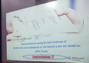 Ternate, 23 September 2024. KPPN Ternate berhasil direkomendasikan untuk memperoleh resertifikasi Sistem Manajemen Mutu (SMM) ISO 9001:2015 oleh lembaga sertifikasi TÜV Rheinland Indonesia. Hal ini menjadi bukti atas konsistensi dan komitmen teguh KPPN Ternate dalam memberikan pelayanan kepada stakeholder.