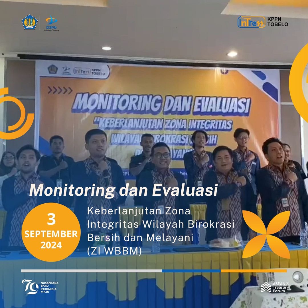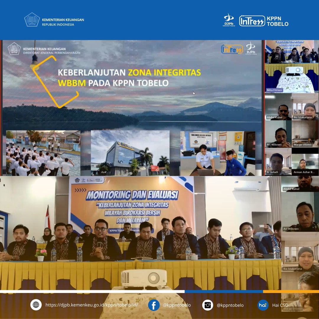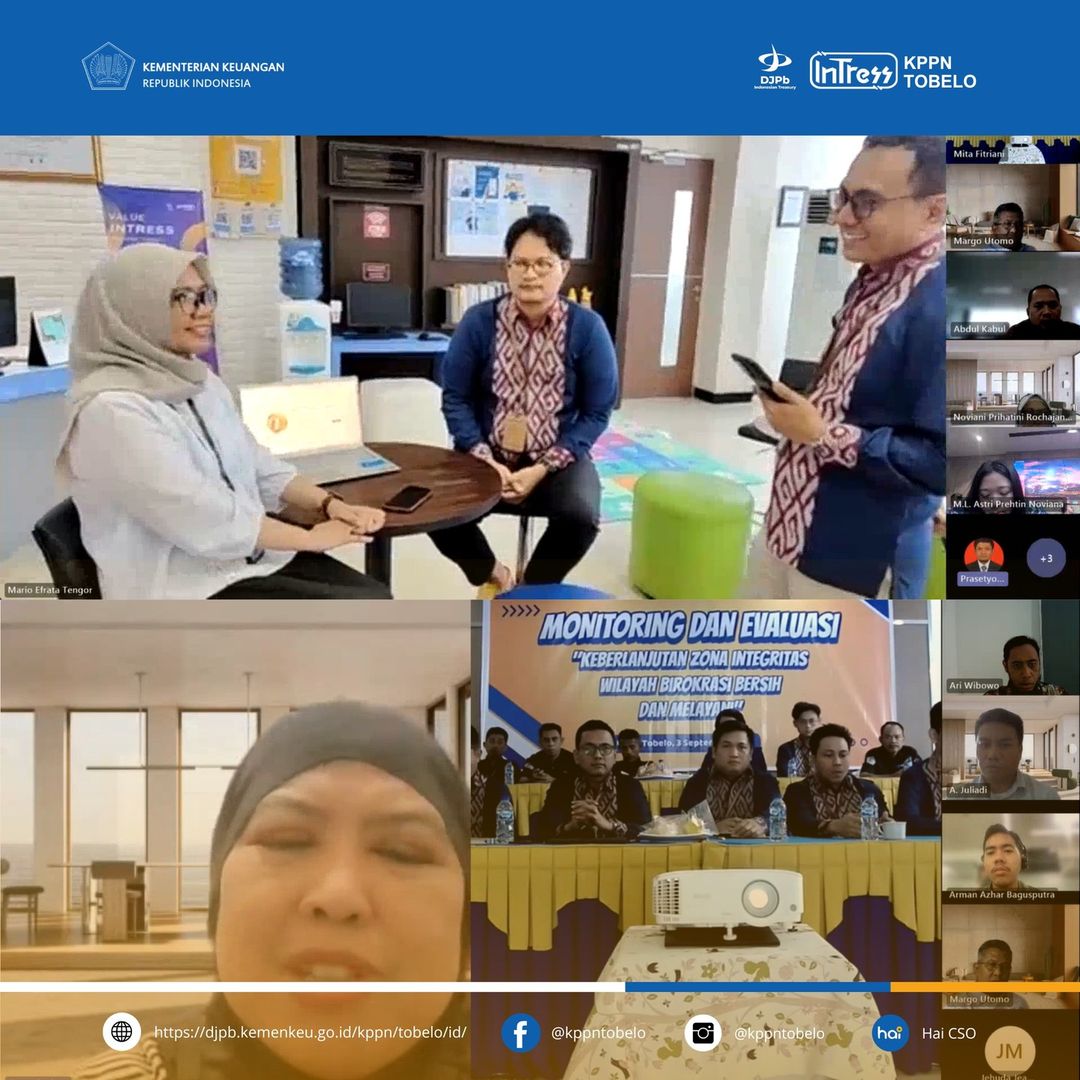 Pada 3 September 2024, Kantor Pelayanan Perbendaharaan Negara Tipe A2 Tobelo mengikuti kegiatan Monitoring dan Evaluasi Keberlanjutan Zona Integritas Wilayah Birokrasi Bersih dan Melayani (ZI WBBM) secara daring.