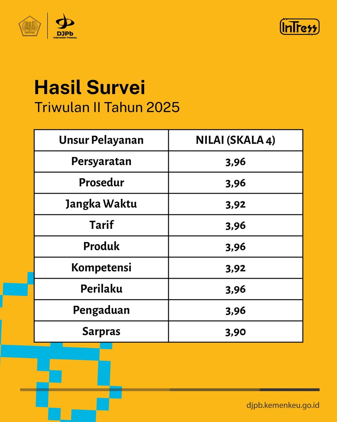 Namun, terdapat sedikit catatan pada unsur Jangka Waktu, yang meskipun masih dalam kategori baik, merupakan satu-satunya unsur dengan nilai di bawah 3,90. Oleh karena itu, peningkatan efisiensi dalam penyelesaian layanan dapat menjadi prioritas perbaikan ke depan.
