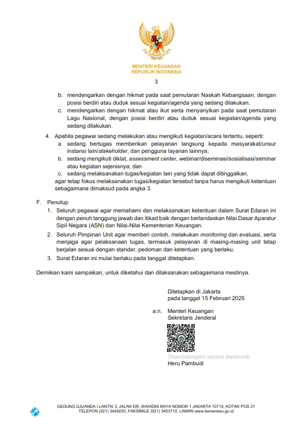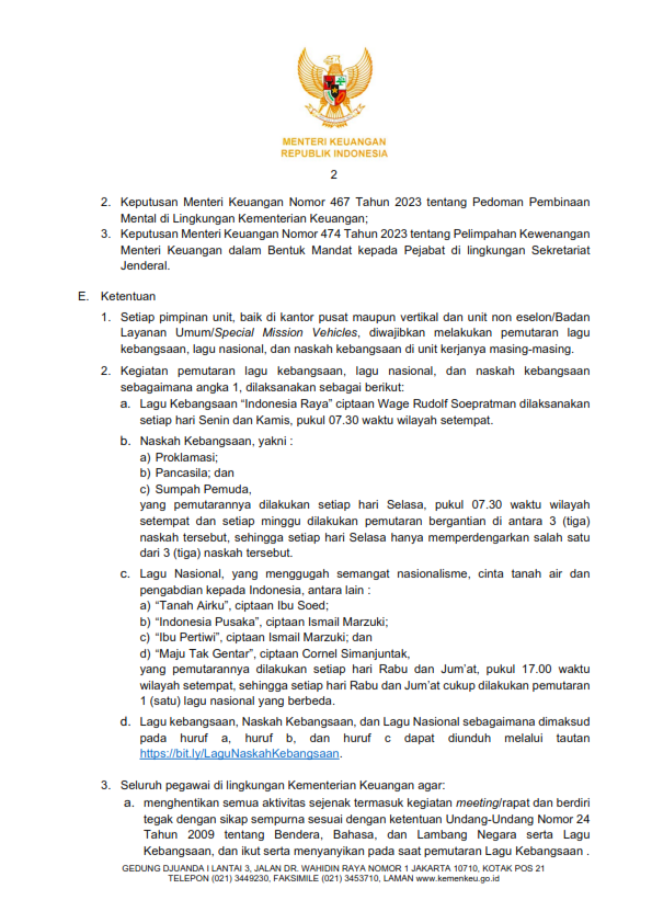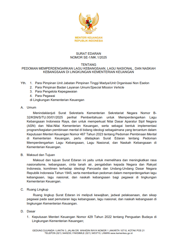 Pedoman Mendengarkan Lagu Kebangsaan, Lagu Nasional, dan Naskah Kebangsaan di Lingkungan Kementerian Keuangan
