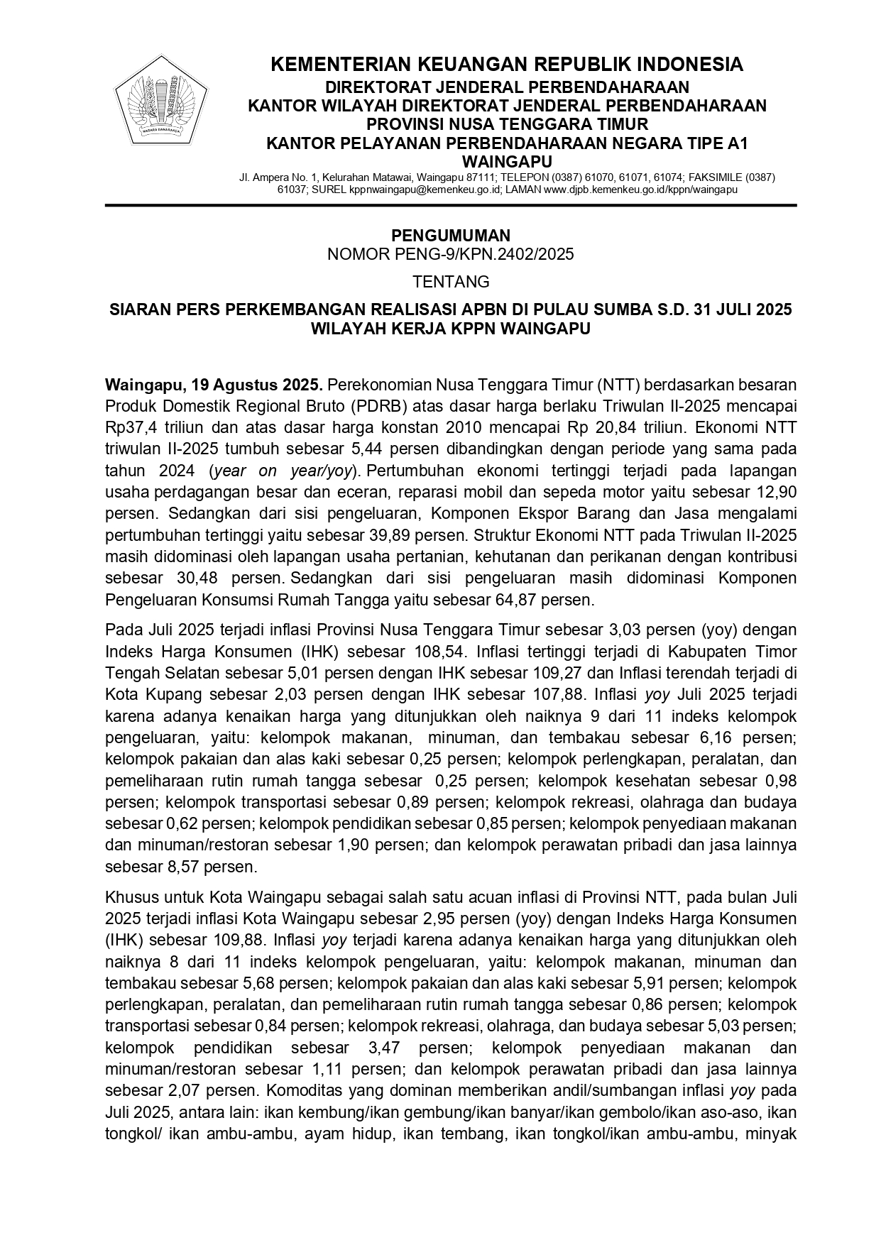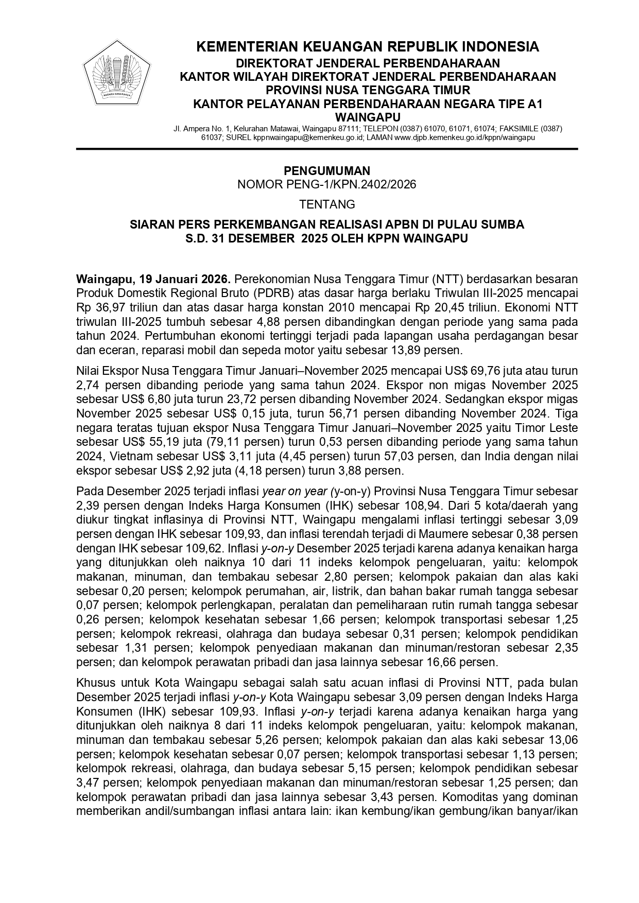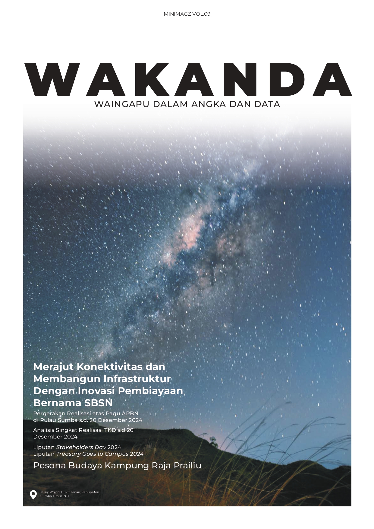 Wakanda dan Simba merupakan inovasi KPPN Waingapu yang memiliki latar belakang sebagai respon KPPN Waingapu terhadap kurangnya awareness masyarakat Sumba kepada isu-isu ekonomi yang berkembang secara nasional ataupun yang terjadi didalam masyarakat di Sumba sendiri. Mini Magazine atau Buletin yang terbit setiap bulan ini disusun sebagai jembatan informasi KPPN Waingapu dengan seluruh masyarakat Pulau Sumba terkait capaian ekonomi sebagai wujud pelaksanaan anggaran pemerintah pusat dan daerah di wilayah Pulau Sumba yang terdiri dari empat Kabupaten. Publik secara luas dan khususnya masyarakat Sumba dapat mendapatkan manfaat dari sebaran informasi terkait perkembangan ekonomi dan pengaruhnya terhadap kesejahteraan masyarakat di pulau Sumba. Dengan awareness yang meningkat terhadap isu perkembangan ekonomi, masyarakat menjadi lebih kritis dan memahami bagaimana mengambil langkah untuk berkembang dan memajukan daerah Sumba.Wakanda berisi analisis singkat yang disajikan melalui Angka dan Data terkait perkembangan ekonomi di Pulau Sumba yang merupakan wujud kesungguhan KPPN Waingapu dalam rangka melakukan penajaman fungsi KPPN Waingapu sebagai KPPN Tipe A1 di Provinsi NTT dalam rangka mewujudkan Regional Chief Economists (RCE) dan memenuhi standarisasi manajemen KPPN. Tidak lupa Wakanda memuat berbagai upaya dalam rangka pemberdayaaan UMKM dan terus bersinergi dengan Pemda juga BLU/BLUD senantiasa dilakukan menuju Sumba Tumbuh, Indonesia Tangguh. | |||