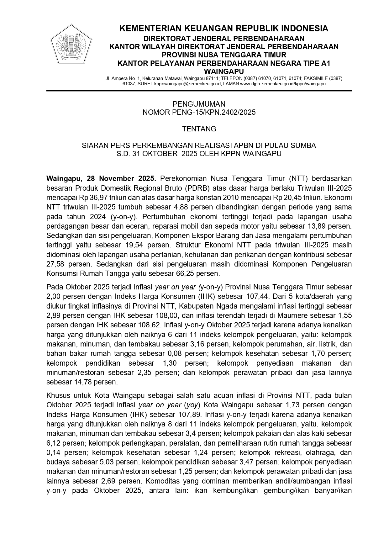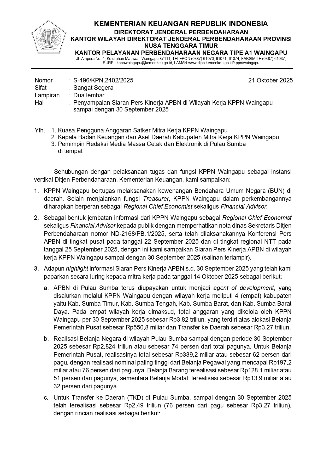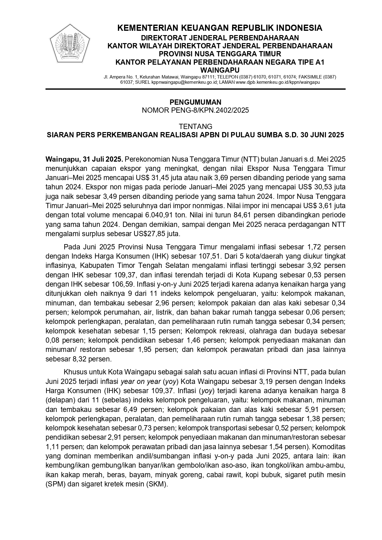 Wakanda dan Simba merupakan inovasi KPPN Waingapu yang memiliki latar belakang sebagai respon KPPN Waingapu terhadap kurangnya awareness masyarakat Sumba kepada isu-isu ekonomi yang berkembang secara nasional ataupun yang terjadi didalam masyarakat di Sumba sendiri. Mini Magazine atau Buletin yang terbit setiap bulan ini disusun sebagai jembatan informasi KPPN Waingapu dengan seluruh masyarakat Pulau Sumba terkait capaian ekonomi sebagai wujud pelaksanaan anggaran pemerintah pusat dan daerah di wilayah Pulau Sumba yang terdiri dari empat Kabupaten. Publik secara luas dan khususnya masyarakat Sumba dapat mendapatkan manfaat dari sebaran informasi terkait perkembangan ekonomi dan pengaruhnya terhadap kesejahteraan masyarakat di pulau Sumba. Dengan awareness yang meningkat terhadap isu perkembangan ekonomi, masyarakat menjadi lebih kritis dan memahami bagaimana mengambil langkah untuk berkembang dan memajukan daerah Sumba.Wakanda berisi analisis singkat yang disajikan melalui Angka dan Data terkait perkembangan ekonomi di Pulau Sumba yang merupakan wujud kesungguhan KPPN Waingapu dalam rangka melakukan penajaman fungsi KPPN Waingapu sebagai KPPN Tipe A1 di Provinsi NTT dalam rangka mewujudkan Regional Chief Economists (RCE) dan memenuhi standarisasi manajemen KPPN. Tidak lupa Wakanda memuat berbagai upaya dalam rangka pemberdayaaan UMKM dan terus bersinergi dengan Pemda juga BLU/BLUD senantiasa dilakukan menuju Sumba Tumbuh, Indonesia Tangguh. | |||