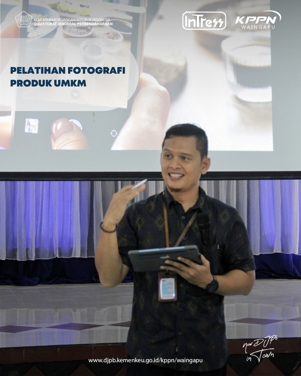 Berupaya mendorong perkembangan UMKM di Kab. Sumba Timur, KPPN Waingapu melaksanakan kegiatan Pelatihan Fotografi Produk. Kegiatan ini dilaksanakan pada aula KPPN Waingapu (28/11). Pelatihan ini diikuti oleh 20 pemilik bisnis/usaha UMKM di Kabupaten Sumba Timur.