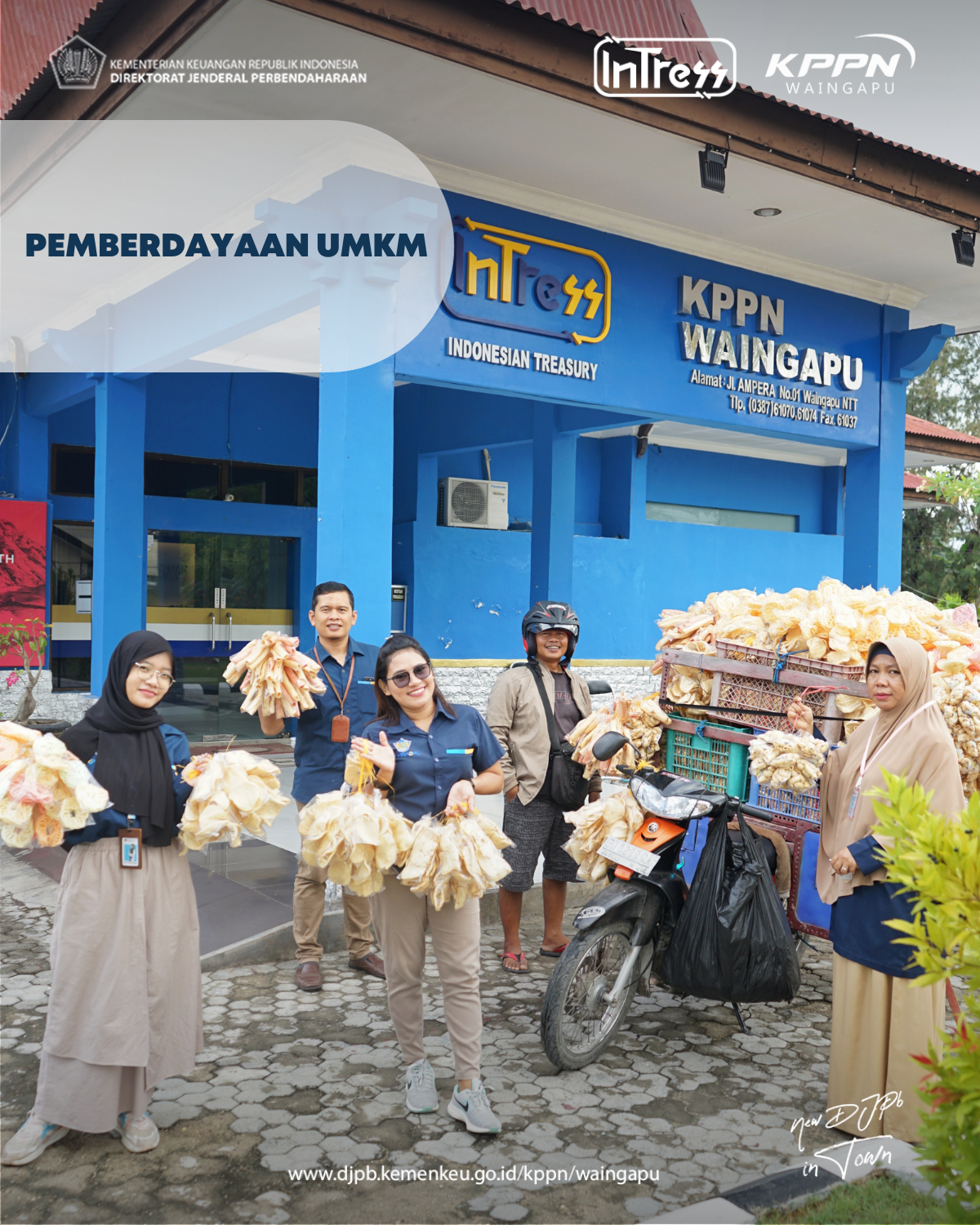 Dalam rangka mendukung pemberdayaan UMKM yang berada di Kabupaten Sumba Timur, KPPN Waingapu turut serta dalam membeli produk UMKM milik Mas No selaku pedagang kerupuk. Beraneka ragam kerupuk ditawarkan oleh Mas No mulai dari kerupuk kulit, kerupuk bulat, makaroni dan masih banyak lagi jenis kerupuk lainnya (20/12).
