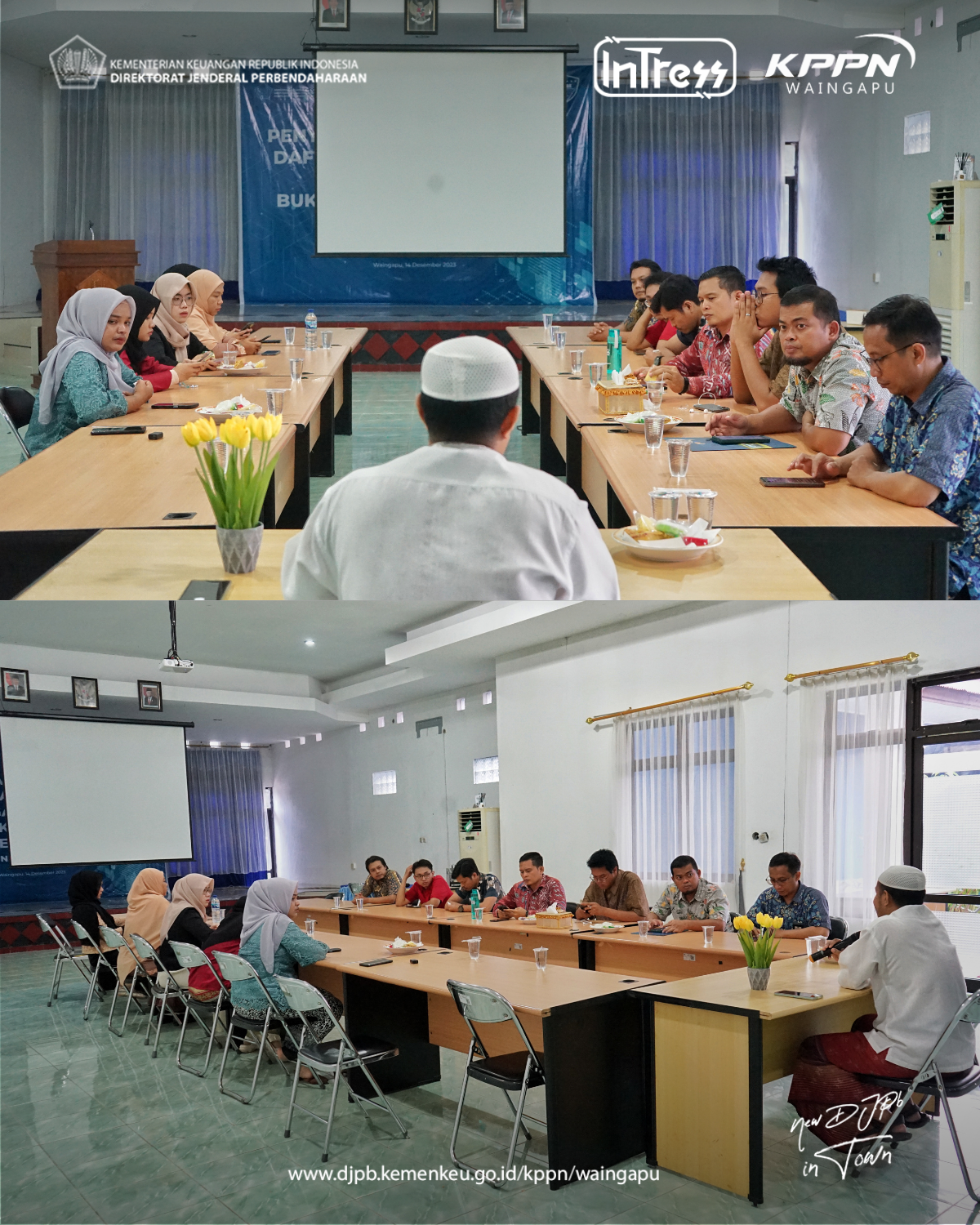 Untuk merefresh mental spiritual, KPPN Waingapu melaksanakan kegiatan Bimbingan Mental (Bintal) Islam dengan tema Takut, Harap dan Cemas dalam sudut pandang Islam. Kegiatan ini dibuka oleh Uji W. Purnomo selaku Kepala Seksi Pencarian Dana sebagai Moderator kemudian dilanjutkan oleh ceramah dari Abdul Hamid Arif selaku Ustadz pemberi kajian dan diikuti oleh seluruh pegawai dan ppnpn KPPN Waingapu yang beragama Islam (22/12).