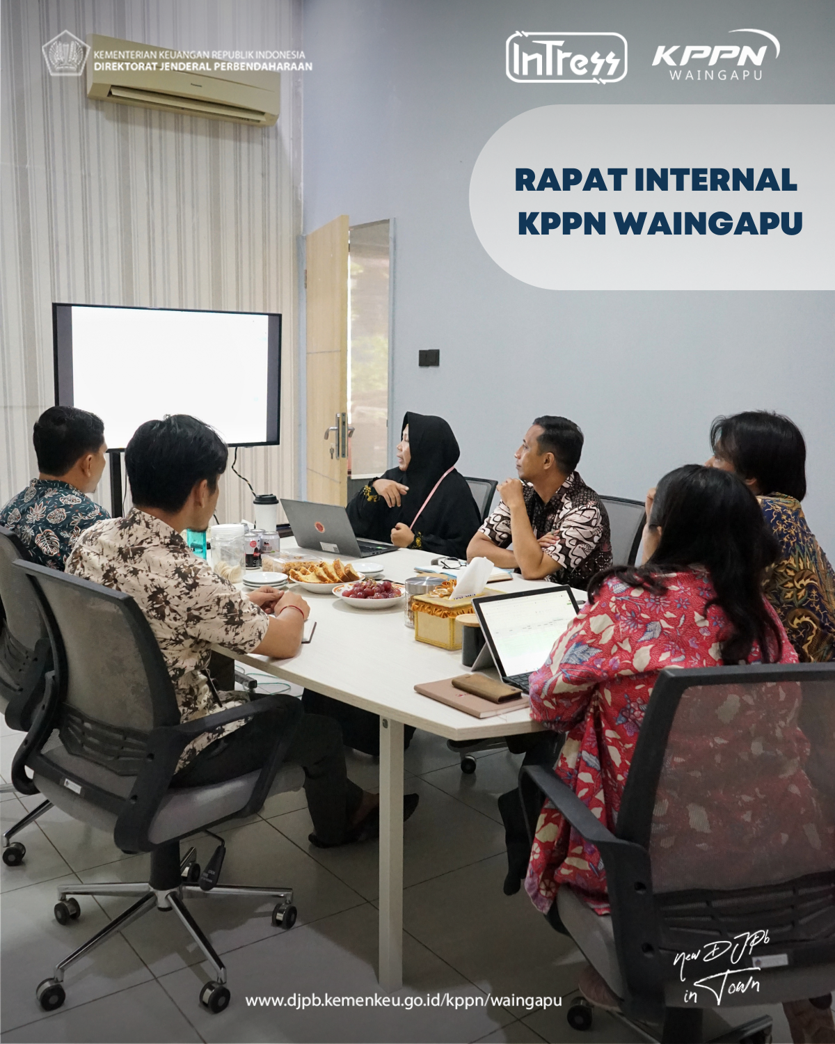 Mengawali minggu kedua di tahun 2024, KPPN Waingapu kembali melaksanakan kegiatan Rapat Internal. Rapat ini bertujuan untuk meningkatkan komunikasi, koordinasi, menyamakan pemahaman, serta menciptakan ruang bagi ide-ide baru di awal tahun dalam penyelesaian setiap pekerjaan yang dilaksanakan. Kegiatan ini dipimpin oleh Natalia Madiarti selaku Kepala KPPN Waingapu dan diikuti oleh Tino Adi Prabowo selaku Kepala Subbagian Umum, Purnama Yati selaku Kepala Seksi MSKI, Uji W. Purnomo selaku Kepala Seksi Pencairan Dana, Yusan Sirida selaku Kepala Seksi Bank, dan Teguh Raharjo selaku Kepala Seksi Verifikasi dan Akuntansi (05/01).