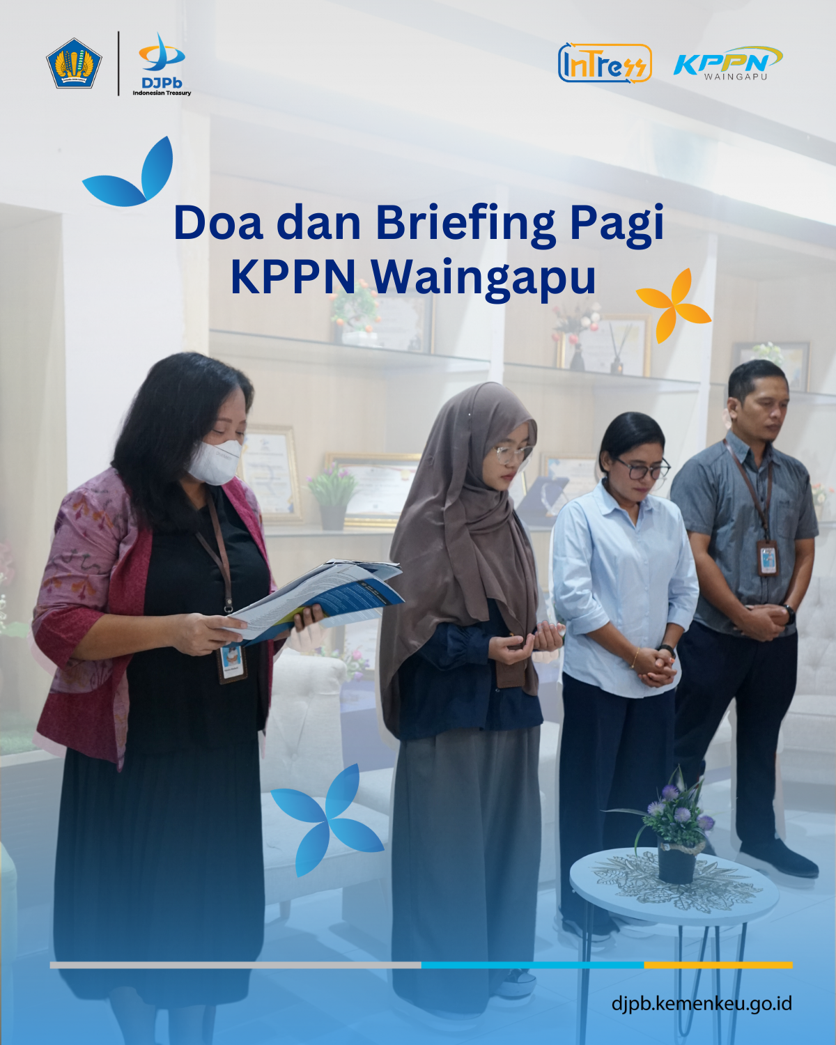 Hay #Sobat_InTress041, Setiap tantangan yang kita hadapi adalah peluang untuk belajar dan berkembang. Oleh karena itu, sebelum memulai aktivitas kerja KPPN Waingapu selalu menyempatkan waktu untuk melaksanakan doa dan briefing pagi bersama.