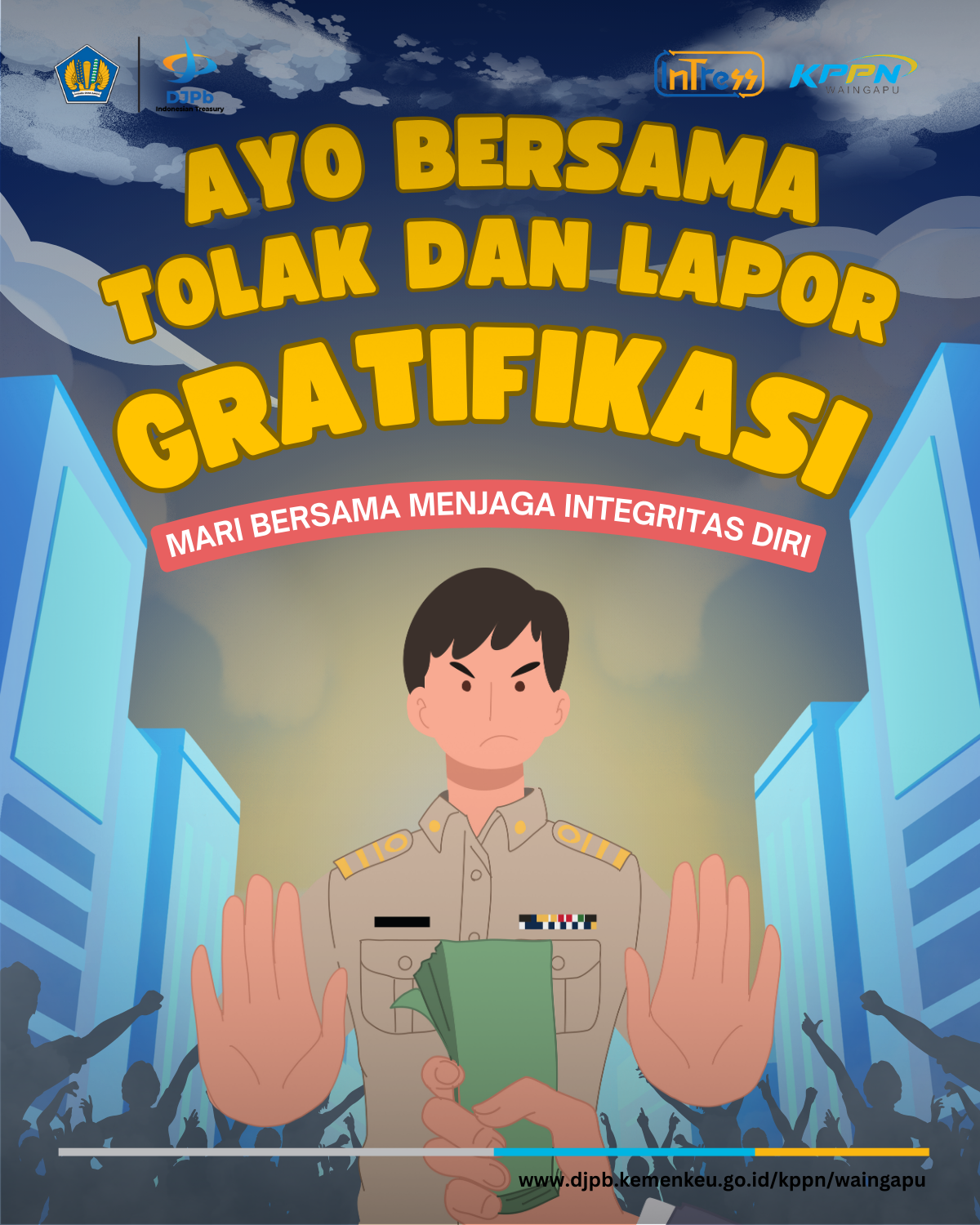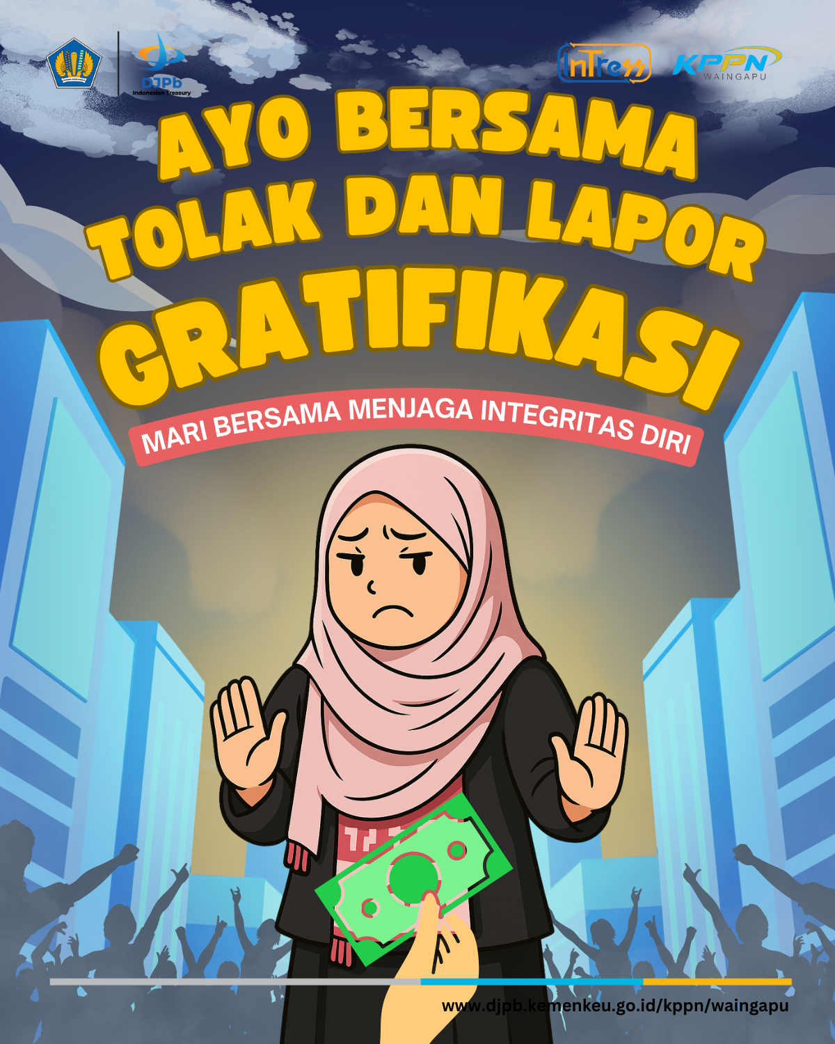 Mari bersama jujur dalam bekerja. Tolak dan lapor gratifikasi dalam bentuk apapun, junjung integritas diri!