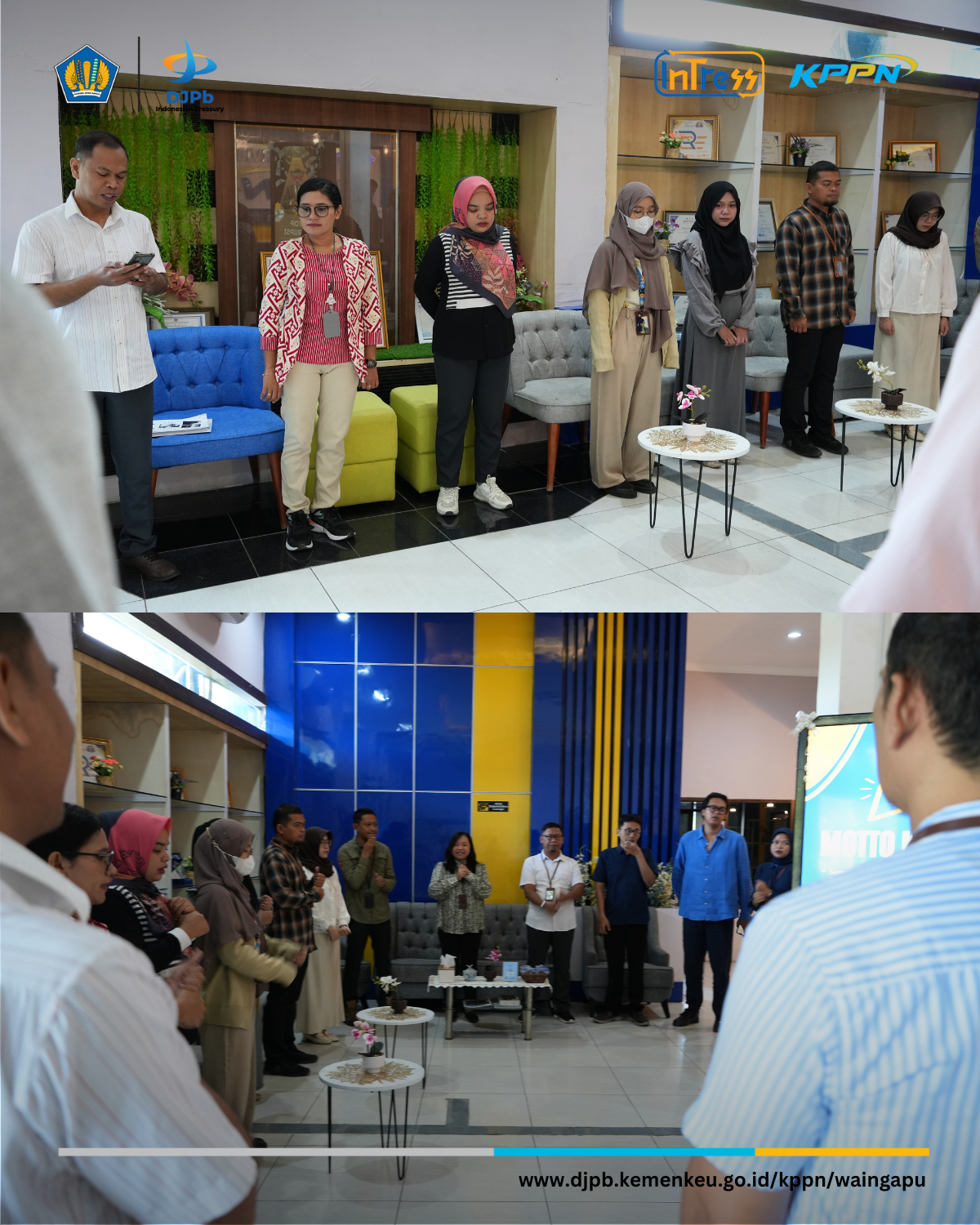 Hallo #Sobat_InTress041, Doa dan briefing pagi di KPPN Waingapu merupakan rutinitas penting yang dilaksanakan setiap hari sebelum memulai aktivitas kerja sebagai bentuk ungkapan syukur dan harapan agar seluruh tugas dapat dilaksanakan dengan lancar dan penuh berkah. Selanjutnya, briefing pagi digunakan sebagai sarana penyampaian informasi terkini, evaluasi pekerjaan, serta penguatan semangat dan integritas pegawai.