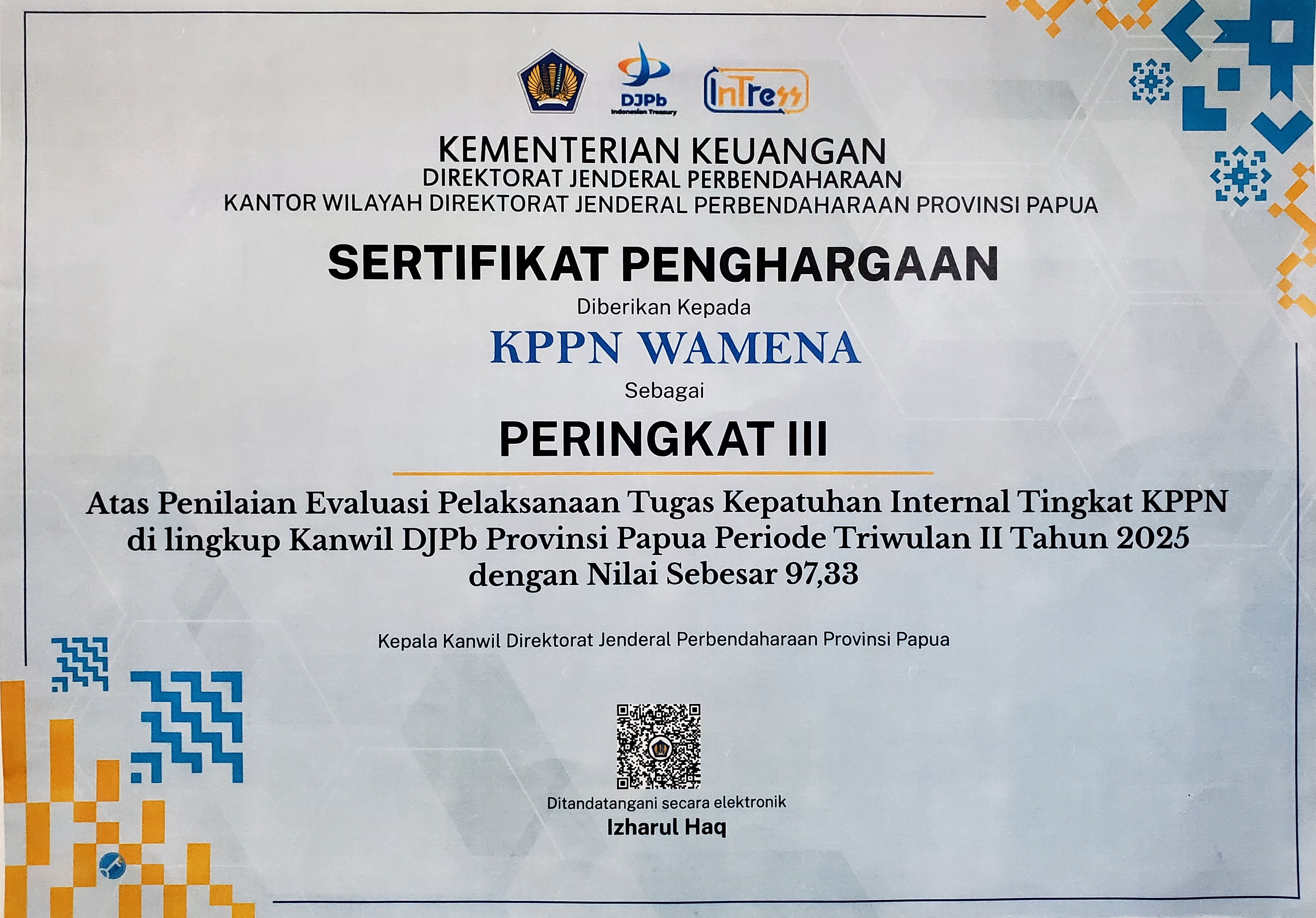 Berdasarkan hasil implementasi tugas kepatuhan internal yang telah dijalankan, Kami telah mencapai beberapa prestasi yang membanggakan di lingkup Kanwil Ditjen Perbendaharaan. Selain itu, terhadap implementasi program pemberantasan korupsi dan gratifikasi serta pelaksanaan reformasi birokrasi, Kami melaksanakan kegiatan Hari Anti Korupsi yang mendapat apresiasi dari peserta yang merupakan stakeholder/satuan kerja dalam lingkup pelayanan kami. Prestasi-prestasi ini tidak lepas dari keberhasilan dalam menerapkan pelaksanaan tugas kepatuhan internal di lingkungan Kanwil Direktorat Jenderal Perbendaharaan Provinsi Papua.